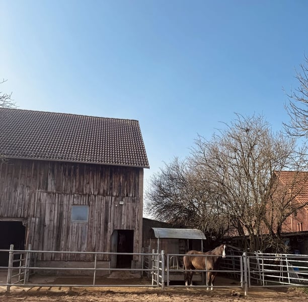 Wir haben ab sofort Platz in unserem kleinen Stall frei – entweder im Offenstall oder in einer großen Box. Bei uns geht es ruhig und unkompliziert zu. Kein großer Betrieb, sondern eine kleine Stallgemeinschaft, in der jeder in seinem Tempo mit seinem Pferd arbeiten kann. Das gibt’s bei uns: * Reitplatz (25 x 40 m) direkt am Stall mit Flutlicht * Tolle Koppeln * Roundpen * Schönes, weitläufiges Ausreitgelände direkt ab Hof * 24/7 Heu * Reiterstübchen * Sattelkammer * Wasch- und Putzplatz * Sitzmöglichkeiten Alles ist direkt am Stall, man hat kurze Wege und seine Ruhe. Wenn du einen unkomplizierten Platz für dein Pferd suchst und dir eine entspannte Atmosphäre wichtig ist, melde dich gerne Gerne unter der 0160 4772595 melden.