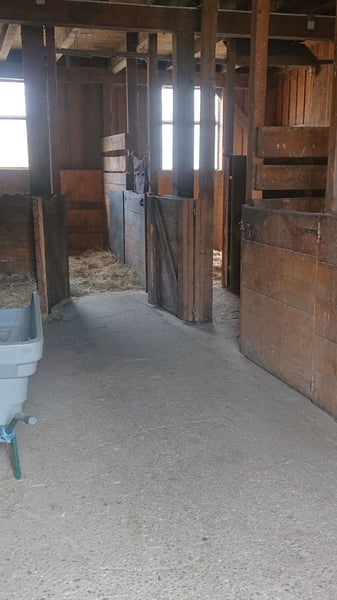 Offenstall für 1Pferde max. Stockmass 1,45m, mit Jahres Weide und 2 Boxen mit Allwetter-koppel wahlweise ohne Wiesen-Koppel oder mit Wiesen-Koppel frei.