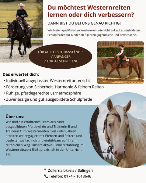 Westernreitschule hat noch ein paar Plätze frei auf gut ausgebildete Schulpferde. Alle Altersklassen und Ausbildungsstände willkommen.