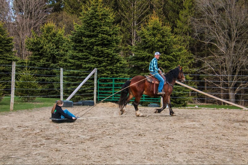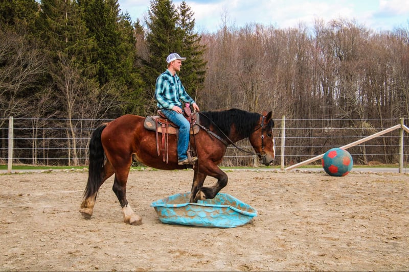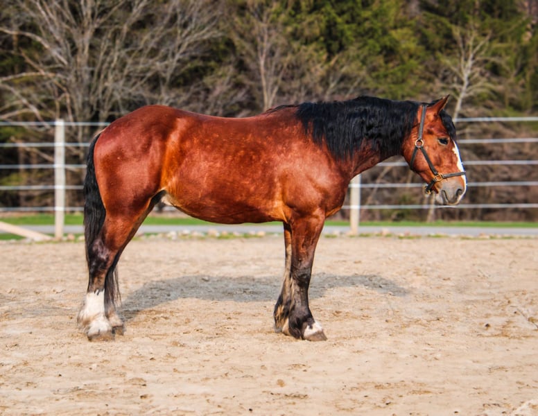 ONLINE AUCTION Place your bids at www.PlatinumEquineAuction.com Starting Bid $3500 Auction ends June 15th, 2025 Need a new saddle? Check out White Rock Saddles on our website or Facebook! Aries is a 4-year-old Clyde cross gelding standing 16.2h tall and weighing roughly 1500 pounds. He has a nice walk, trot, canter, backs, yields his hindquarters, stops off your seat, and side passes. We have used Aries for various events on the farm, such as trail rides, lessons, driving, and our veterans programs; he does it all. Aries has many miles out on the trail and in the arena. He will lope a nice circle in the arena and then ride alone or with a group and cross water, logs, and ditches with no problem. Aries is not only great at riding, but he also drives! He is traffic-safe and comfortable around different types of machinery. Aries’s ability to adapt to various situations and his calm demeanor make him a trusted partner no matter what you want to do. His steady nature and willingness to learn new skills make him a reliable partner for any endeavor. Aries’s versatility and easy-going personality make him a favorite in the barn. We have used Aries as a pony horse for young children on trail rides; even when they feel anxious, he remains composed. Aries loads and unloads with ease and has been hauled to different locations. He behaves like a seasoned horse when stepping off the trailer. Aries is a reliable and well-rounded horse that everyone can enjoy. He stands for the farrier, vet, and clipping. He is UTD on all shots and has a current coggins. Aries sells 100% sound with no vices. PPE is welcomed at potential buyers’ expense. Contact Dayton Wilcott at 585-734-0169 for more information, Aries. Located in Warsaw, NY. ONLINE AUCTION Place your bids at www.PlatinumEquineAuction.com Starting Bid $3500 Auction ends June 15th, 2025 Need a new saddle? Check out White Rock Saddles on our website or Facebook!