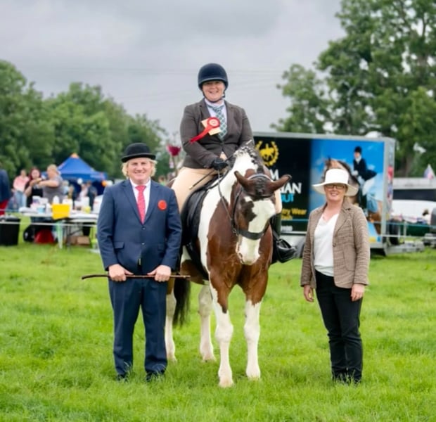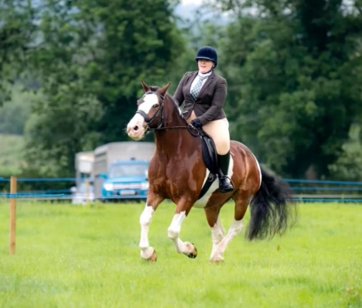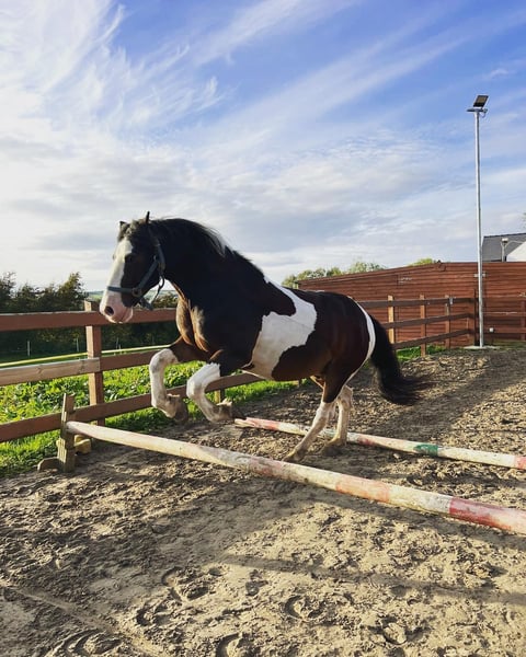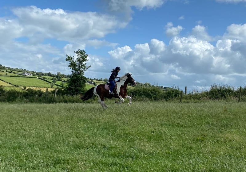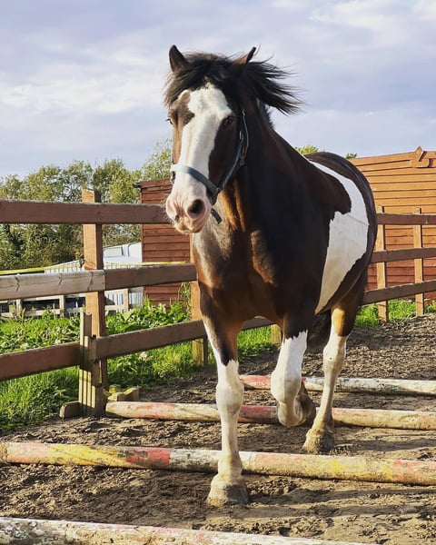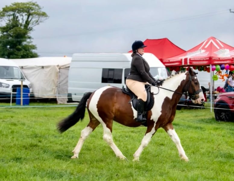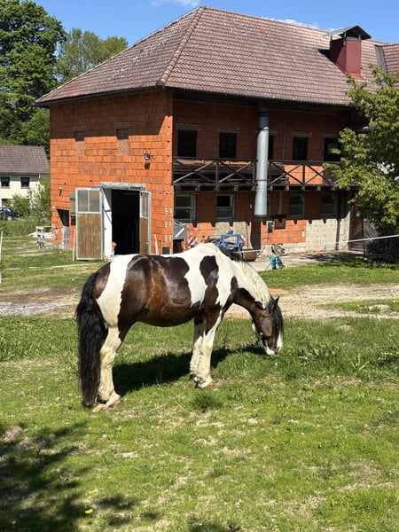 Harry ist ein 14-jähriger Tinker, der in Irland / Donegal gezüchtet wurde. Ich habe ihn die letzten sechs Jahre selbst geritten. Wir haben viele Ausritte gemacht, auch am Strand, im Wald, Longieren, einige Shows in Hand- und Reitklassen, Bodenarbeit und kleine Sprünge. Er ist ein großer, sanfter Kerl, der es liebt, gestriegelt zu werden. Er ist äußerst freundlich zum Hufschmied, lädt problemlos in den Pferdeanhänger, ist an landwirtschaftliche Geräte gewöhnt, lebt in einer Herde und kennt den Umgang mit anderen Pferden. Er hat vorbildliche Manieren, ist gewöhnt ans Kämmen und Anlegen von Decken. Harry ist ein Tinker, den man nur schwer findet, und aufgrund seiner Größe erfüllt er viele Wünsche. Aufgrund familiärer Veränderungen habe ich die traurige Entscheidung getroffen, ihm ein neues, dauerhaftes Zuhause zu suchen. Mir fehlt einfach die Zeit für ihn.