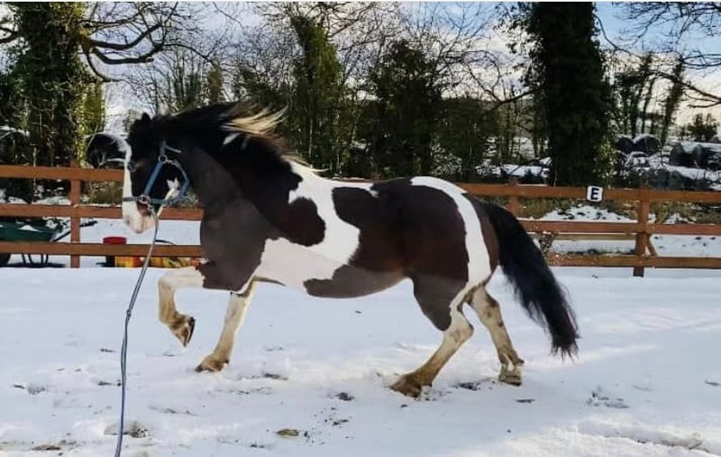 Harry is a 14 year old Cob, that was bred in Ireland / Donegal and I have owned him for the last 6 years. We have done lots of hacking, beach rides, forest rides, lungeing, some showing in hand and ridden classes, ground work and some small jumps. He is a big gentle boy who loves to be groomed, is excellent with the farrier, loads on to horse box easily, is used to farm machinery, lives in a herd and is used to other horses, he has excellent manners, is used to being clipped or being rugged. Harry is that kind of cob that is hard to find and due to his size he ticks lots of boxes. He hasn’t been doing a lot this last past year as we moved to Austria, mainly hacking and some ground work. He is also great with children. Due to family changes I have made the sad decision to find him a new forever home. I just haven’t got enough time for him anymore.