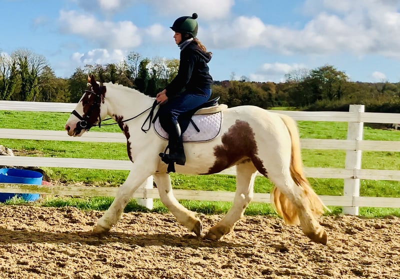 Harley, eine bezaubernde, fast 5-jährige, gescheckte Stute (Skewbald), misst knapp unter 14.1hh und hat noch ein kleines Stück Wachstum vor sich. Harley ist ein echter Schatz – freundlich, liebenswert und voller Charakter – die Art von Stute, die einem sofort das Herz stiehlt, sobald man sie kennenlernt. Sie ist wunderschön gezeichnet, hat einen kräftigen, ausgewogenen Körperbau mit „einem Bein in jeder Ecke“, hervorragende Knochenstärke und eine Ausstrahlung, die sie überall hervorstechen lässt. Harley ist eine sehr vielseitige und ehrliche kleine Stute, die alles gelassen nimmt und immer ihr Bestes gibt, um zu gefallen. Harley ist ein wahrer Genuss zu reiten. Sie ist ruhig, vernünftig und unkompliziert – eine ideale Wahl für Reitanfänger, ein Mutter-Tochter-Team, eine Reitschule oder jeden, der einen sicheren, zuverlässigen und motivierten Allrounder sucht. Sie ist auf dem Platz gut ausgebildet, hat drei ausbalancierte, taktreine Grundgangarten und arbeitet freudig vorwärts, ohne je stark oder übermütig zu werden. Beim Springen ist sie ehrlich, hat Spaß daran und wurde bereits über bunte Stangen sowie Geländesprünge gearbeitet – sie nimmt jedes Hindernis mit Mut und einer unkomplizierten Einstellung. Beim Ausreiten ist Harley absolut zuverlässig. Sie geht gerne allein oder in der Gruppe, ist im Straßenverkehr hervorragend und kennt landwirtschaftliche Fahrzeuge und das Landleben bestens. Sie ist die Art von Pony, die ihrem Reiter Sicherheit gibt – egal, ob man gemütlich durchs Dorf reitet, auf dem Feld galoppiert oder einen Jagdausritt unternimmt. Harley eignet sich auch ideal für alle Pony-Club-Aktivitäten – sie ist das Pony, mit dem man einfach Spaß haben kann, ganz gleich, was man gemeinsam unternimmt. Sie hat ein liebenswertes, ausgeglichenes Wesen und ist sowohl im Umgang als auch unter dem Sattel ein echtes Vergnügen. Harley ist brav beim Schmieden, Verladen, Einfangen, Reiten und im Straßenverkehr. Sie hat keine Unarten im Stall, kann jederzeit tierärztlich untersucht werden und ist nun bereit, ihr nächstes liebevolles Zuhause zu finden. Harley würde zu einer großen Bandbreite von Reitern passen – sie ist zuverlässig, gelassen und macht Freude, mit den besten Voraussetzungen, ihre Ausbildung fortzusetzen und ein fantastisches Familien- oder Allroundpony zu werden. Der Preis beinhaltet die Lieferung zu Ihrem Hof überall im Vereinigten Königreich, und wir bieten einen Umtausch an, falls Sie nicht vollständig zufrieden mit ihr sind. Scrollen Sie nach unten, um ihr Video anzusehen und selbst zu sehen, was für eine entzückende, freundliche und ehrliche kleine Stute sie ist. Für weitere Informationen oder um einen Besichtigungstermin zu vereinbaren, rufen Sie mich gerne jederzeit unter 00353 868077626 an oder schreiben Sie an gertytynan@gmail.com. Harley ist wirklich ein besonderer Fund – lieb, zuverlässig und voller Lebensfreude – die Art von Stute, von der jeder träumt, sie zu besitzen.