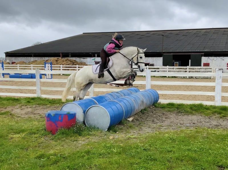 ❄️🤍Snowball – a safe, mellow project for an amateur to have fun with, family pony, and future working hunter star 🤍❄️ Snowball is a 14.2h 4yo grey purebred Connemara gelding with a relaxed, easygoing personality and mature work ethic for his age He has been started jumping 80cm courses and finds it enjoyable, he is careful and honest over fences without getting excited He is the epitome of the Connemara breed, very smart and easy to teach, eager to please, and learns quickly Snowball enjoys cross country and proves to be brave and honest to new fences, and well behaved in open fields He is quiet to hack in groups and good in traffic He is very mellow for his age and consistent in his work ethic; he is more woah than go to ride and not at all spooky or silly He enjoys attention and being groomed, he has a sweet and snuggly personality. He would suit a family with children of varying levels to grow with him as he is young but safe and very unbothered by rider errors. We believe he would best suit someone looking to produce a future working hunter as he has beautiful confirmation and is an ideal model Snowball always goes in a loose ring snaffle He is easy for anyone to clip, load, shoe, groom, tie, plait, etc. Snowball is open to any vetting Price includes delivery to the UK, exchange if you’re not happy