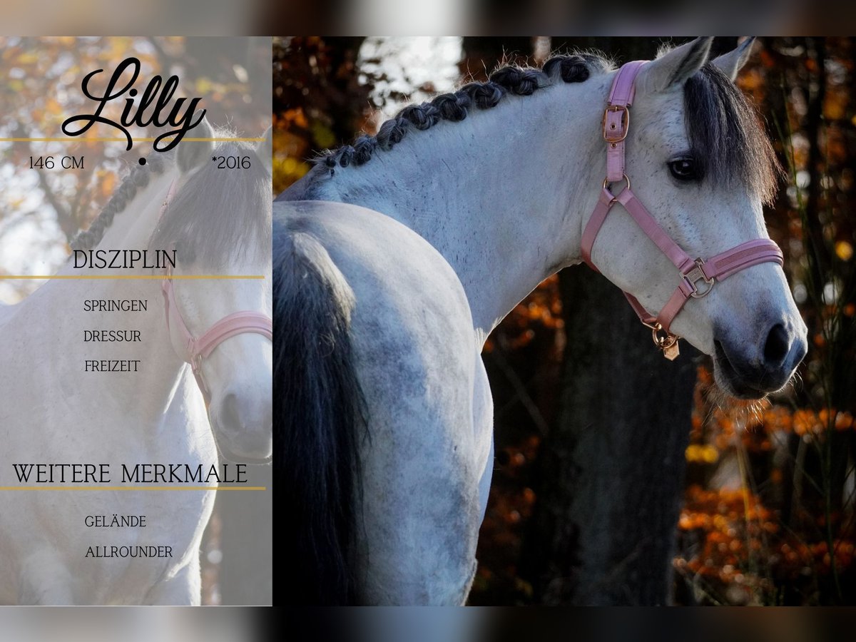 On behalf of the client: Lilly is a 9.5-year-old pony mare, approximately 1.46 meters tall. *Lilly* is a stunning, super cool mare. She has competed in show jumping with children and has accumulated many ribbons. Lilly is very steady-minded and goes out alone or in a group in the terrain; neither deer jumping in front of her, vehicles, nor unfamiliar surroundings bother her. She is also trained to be ridden with a halter and to jump, and she enjoys every kind of fun. !!! BE SURE TO WATCH HER VIDEOS !!! A great beginner’s pony for show jumping competitions as well. She is not hot or sensitive to aids. Lilly comes with a large clinical pre-purchase exam and X-rays. Don’t wait – such a dream pony is rarely found. Horse trading Dederichs – Your partner for horse buying Contact & Availability: Please inquire exclusively by phone at 0173/9792139 Monday – Friday: 9:00 AM – 6:00 PM Saturday: 9:00 AM – 3:00 PM Sunday: Closed Follow us on social media! Experience our daily work with the sale horses on Instagram, TikTok & Facebook at Pferdehandlung Dederichs Discount: Receive 5%–10% off if you take your new dream horse immediately. Trial riding & demonstration: • Trial ride: €40 per horse (up to 2 riders) • Holidays: Trial ride €50 • Demonstration by our grooms: €30 per horse (pre-riding, ground work, etc.) Pre-purchase examination & transport: • Many of our horses already have a pre-purchase exam (AKU) • You are welcome to bring your own veterinarian • We can arrange an examination for you • We also gladly assist with transport to your new home Additional horses for sale: We have more horses for sale in our stable that are not yet listed online. If your dream horse is not yet among them, do not hesitate to contact us. Important notes: • Estimated height measurements are approximate and not precisely measured • All descriptions are subjective assessments by the seller and do not constitute guaranteed properties