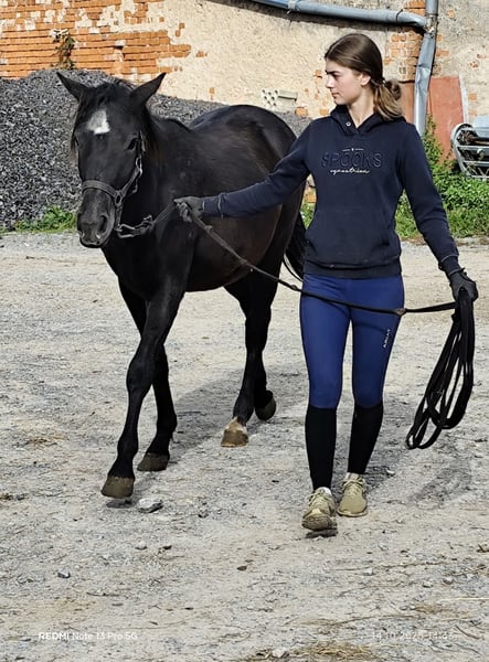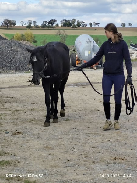 Connemara Cross Mare – Perfect for Leisure Riding! For sale is a beautiful black mare, born in 2024. With an approximate height of 15.0 hh, she is ideal for leisure riders and enthusiasts. The Connemara breed is renowned for its versatility, charm, and friendly nature – making her perfect for riders seeking a reliable and gentle partner. She is healthy, well-trained, and exhibits a very lovable demeanor. Whether for trail riding, walks, or relaxed outings, this mare is the ideal companion for leisure activities. Please feel free to contact me for more information or if you are interested. Viewing and trial rides can be arranged by appointment.