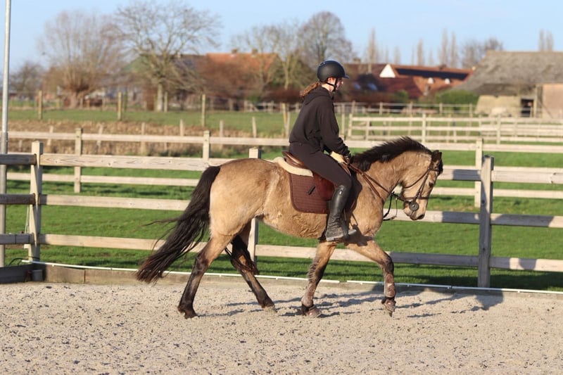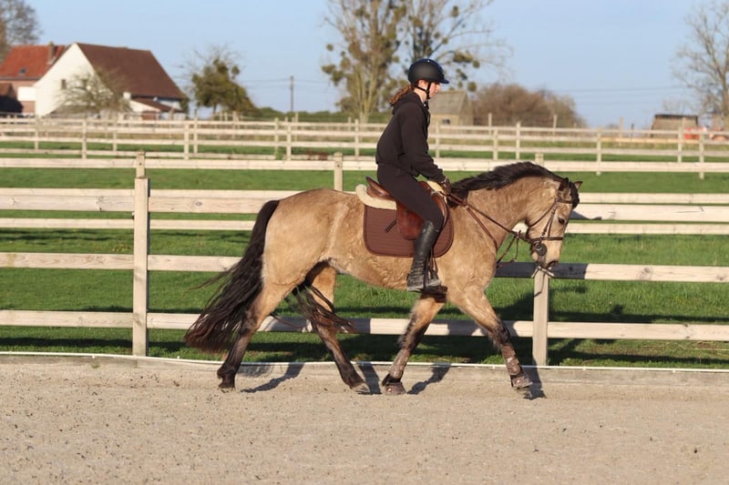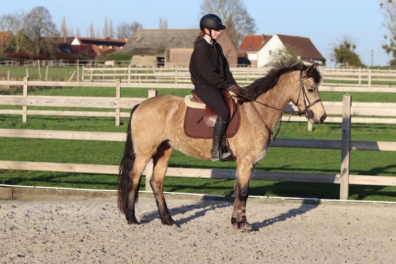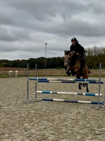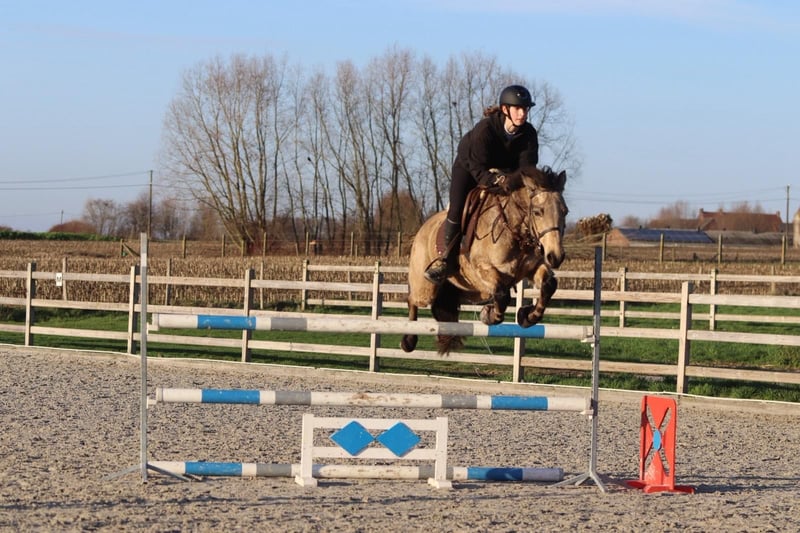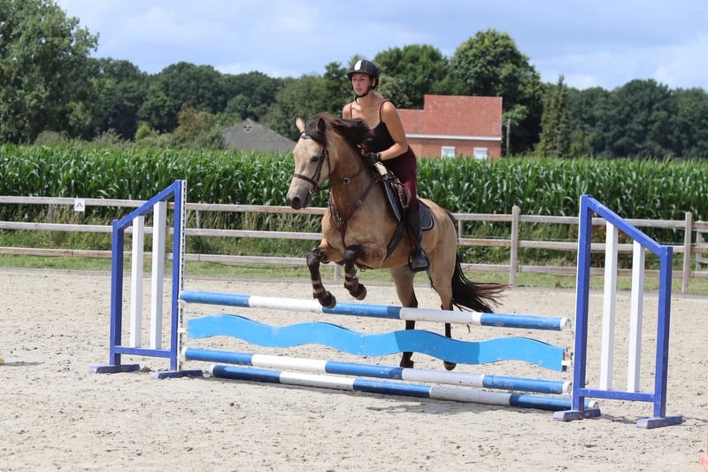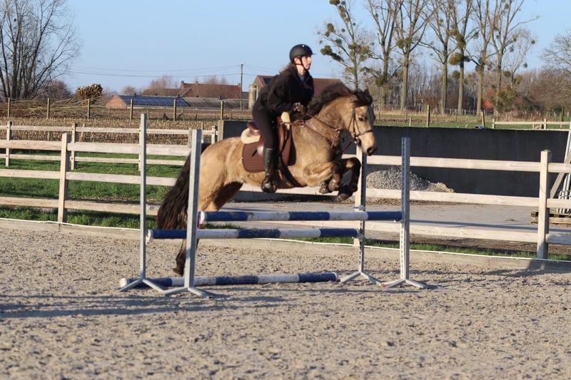 Connemara – 5-year-old mare – 14.2–14.3 hh Goldie is a particularly gentle and sweet 5-year-old Connemara mare with a beautiful, compact build. She is very pleasant to handle: social with other horses and completely free of typical mare behavior. She also travels very easily. Under saddle, Goldie has plenty of power and enthusiasm. She remains consistently well-behaved and is easy to control, but due to her forward temperament, she is especially suitable for experienced riders who enjoy riding with challenge and energy. In jumping, Goldie demonstrates great ability and enthusiasm. She effortlessly clears 4’0” (1.20 m), always with plenty of GO. She never refuses. Goldie was fully veterinary and clinical checked on 24/06/2025 (legs, back, and neck), with no remarks. 📞 More info: +32 475 68 22 43 🎥 Videos: available on our website (upon request)