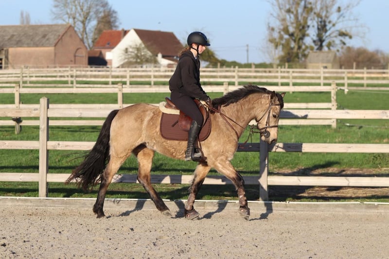 Connemara – Fattrice di 5 anni – 1,50 m – 1,52 m Goldie è una splendida e dolce conformation mare di 5 anni, con un modello compatto e armonioso. In maneggio si presenta molto piacevole: socievole con gli altri cavalli e completamente priva del tipico comportamento da femmina. Inoltre, si fa trasportare molto facilmente. Sotto la sella, Goldie possiede molta potenza e entusiasmo nel lavoro. Rimane sempre molto buona e facile da gestire, ma grazie al suo carattere propositivo è particolarmente adatta a cavalieri sensibili che amano affrontare sfide ed energie durante la monta. Durante il salto, Goldie dimostra grande potenza e entusiasmo. Salta senza sforzo i 1,20 m, sempre con grande entusiasmo. Non si rifiuta mai di saltare. Goldie è stata completamente ispezionata radiograficamente e clinicamente (zampe, schiena e collo) il 24/06/2025, senza riscontrare alcuna anomalia. 📞 Per maggiori informazioni: 0032 475 68 22 43 🎥 Video: disponibili sul nostro sito web (su richiesta)