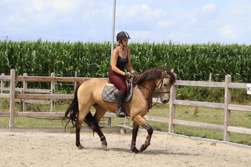 Connemara – 5-letnia klacz – 150–152 cm Goldie to wyjątkowo spokojna i uległa 5-letnia klacz rasy Connemara o pięknym, zwartej budowie. W codziennej obsłudze jest bardzo przyjemna: towarzyska wobec innych koni i całkowicie wolna od typowych cech charakteru klaczy. Dodatkowo, bardzo łatwo się ją transportuje. Pod siodłem Goldie wykazuje dużą moc i chęć do pracy. Zawsze jest spokojna i dobrze reaguje na polecenia, ale ze względu na jej energiczny charakter, jest szczególnie odpowiednia dla doświadczonych jeźdźców, którzy cenią sobie wyzwania i dynamikę podczas jazdy. Podczas skoków Goldie prezentuje dużą moc i entuzjazm. Bez problemu pokonuje przeszkody do 120 cm, zawsze z dużym zaangażowaniem. Nigdy nie odmawia skoku. Goldie została w pełni przebadana klinicznie i radiologicznie (kończyny, grzbiet i szyja) 24.06.2025, bez żadnych zastrzeżeń. 📞 Więcej informacji: 0032 475 68 22 43 🎥 Filmy: dostępne na naszej stronie internetowej (na życzenie)
