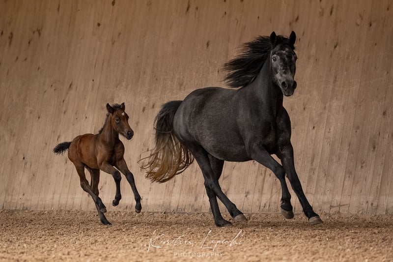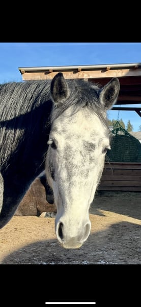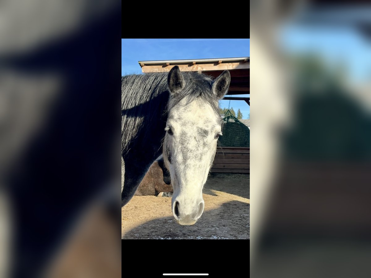 ✨Herzenspferd sucht Herzensmenschen!✨ „Sternbergs Magic Miracle“, Connemara Stute, Geboren 11.05.2020, wird Schimmel, Stockm. 150 cm HWSD N/N Mutter: Maike (Sternbergs) Vater: Caherlistrane Con „Magic“ hat ein sehr sanftes, liebes und menschenbezogenes Wesen. Sie ist im Umgang und auch bei der Arbeit unkompliziert und will immer gefallen. Sie hat keinerlei Unarten. Sie lässt sich super vom Boden aus arbeiten, auch bei der Freiarbeit ist sie sehr fein und macht sehr viel Spaß! Unter dem Sattel ist sie absolut gelassen und arbeitet willig mit. Sie bekommt eine solide Grundausbildung und ist für alle Sparten der Reiterei offen. Sie ist eine verlässliche Freundin für‘s Leben! Ihre Bewegungen sind raumgreifend, weich und harmonisch, zu Recht hat sie als Fohlen die Goldprämien Auszeichung erhalten. Sie ist korrekt im Gebäude, gesund und als Barhufer unterwegs. Bei mir hatte sie 2024 ein großes, wunderschönes Stutfohlen von meinem Hengst Penancing Brook Maddox (beide können besichtigt werden). Das Decken, Geburt und auch die Fohlenzeit waren ohne Komplikationen, Magic war eine sehr gute Mama. Daher wäre sie auch für die Zucht weiterhin sehr interessant! Sie steht aktuell im Offenstall, kennt aber auch Box mit Paddock (Koppel/Weide). Selbstverständlich ist sie regelmäßig geimpft/entwurmt/beim Schmied. Bei Interesse gerne bei mir melden 017664247507