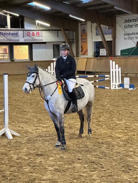 The pony days are coming to an end, and we are therefore looking for a new home for our 7-year-old Connemara mare, Killina Star. We purchased her as a 3-year-old from Hannah and Michaela of the Connemara Ponies Neupärtl, having ridden and trained her ourselves. Killina Star, affectionately called Schnuff, is 1.46 m tall, regularly vaccinated and dewormed, and has been seen regularly by the farrier. She is shod in front and barefoot behind. Schnuff is a reliable partner in the field, with experience in dressage up to medium level, and has placements in A and A* show jumping classes. She has competed up to A** level in competitions. She is familiar with cross-country obstacles and jumps confidently over everything. This season, she has won show jumping competitions and E-classes at WBO events with an 11-year-old girl. Killina Star is not a light jumper, but a very well-trained 7-year-old pony that is always a joy to ride. The mare is always well-behaved in handling, though she can be a bit spirited on some days. She loads easily alone, and our farrier can work on her independently if our schedule doesn’t allow. She is straightforward and pleasant to handle when it comes to grooming and daily care. Whether at home or away, she is always reliable! We are looking for a sportily ambitious new owner for this pony, as she enjoys being active. Just riding in the field would probably become too boring for her over time. A mother-child combination is also very much possible! The mare is well-behaved and uncomplicated but not a pure children’s or beginner’s pony. With support, we see no issues there. She can be ridden well while lunged and walks calmly in all three gaits on the lunge, responding to every command. She also enjoys riding without a saddle or jumping with just a halter. Killina Star loves a varied program. If Killina Star has caught your interest, please feel free to contact us for more information. A comprehensive ultrasound examination, including 15 X-ray images of her legs and back, was performed on November 20th with no findings. The X-ray images and report can be sent upon request.