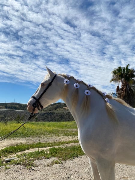 Caballo de paseo muy noble y guapo con los ojos azules. En abril cumple 11 años. Metido en todo tipo de eventos. Es muy noble al trato desde abajo. Se puede probar sin compromiso y se acepta todo tipo de pruebas veterinarias.