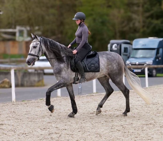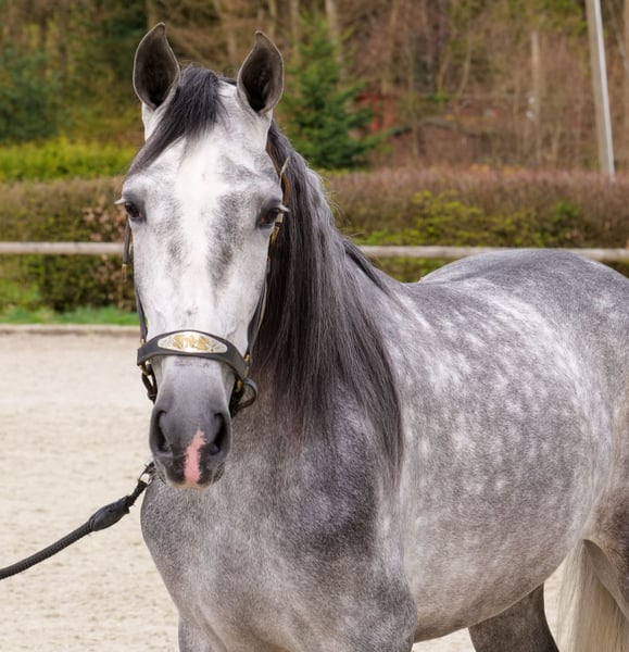 Name: Guajiro Rasse: Cruzado, Kreuzung Geschlecht: Wallach Geburtsdatum: 02.11.2022 Alter: 4 Stockmaß: 1.58m Farbe: Schimmel Abstammung: ohne Abstammungsnachweis Charakter: menschenbezogen, lernwillig, verlässlich, neugierig, intelligent, mutig, gelassen Ausbildung/Eignung: geritten, Dressur, Freizeit, Barock, Working Equitation Geländeerfahrung: zuverlässig, unerschrocken, nervenstark, alleine und in der Gruppe Gesundheit: entwurmt, geimpft, ekzemfrei, Zähne kontrolliert, osteopathisch behandelt Haltung: Box, Paddock Besonderheiten: sehr sitzbequem, schmiede und verladefromm, herdenverträglich Die genannten Eigenschaften beruhen auf unserer persönlichen Einschätzung und stellen keine zugesicherten Merkmale dar. Preis: 8500€ (Bruttopreis) Haben wir ihr Interesse geweckt? Um Ihnen einen besseren Eindruck von Guajiro zu geben, senden wir Ihnen sehr gerne sein Reitvideo zu. Selbstverständlich stehen wir Ihnen für eine ausführliche Beschreibung des Pferdes, persönliche Beratung und zur Beantwortung aller Ihrer Fragen auch telefonisch zur Verfügung. Bitte schreiben Sie uns hierfür jederzeit eine WhatsApp Nachricht, oder rufen unter folgender Telefonnummer an: +49 15119487595 Unsere Telefonzeiten sind täglich von 7:00 - 13:30 sowie ab 20:00Uhr. Wir freuen uns über Ihre Kontaktaufnahme! Eine klinische oder Röntgenologische Ankaufsuntersuchung kann gerne vom Tierarzt Ihrer Wahl durchgeführt werden. Natürlich kann Guajiro sicher und komfortabel in sein neues Zuhause geliefert werden. Wir kümmern uns um alle notwendigen Vorbereitungen und den Transport, damit Ihr neues Pferd stressfrei, gut betreut, versichert und wohlbehalten im neuen Zuhause ankommt. Zurzeit präsentieren wir eine sorgfältig ausgewählte Vielfalt an Verkaufspferden. Bei uns finden Sie garantiert Ihr Traumpferd. Besuchen Sie uns auch gerne auf unserer Homepage unter: www.marvinsroyalhorses.de. Sehr geehrte Kunden, gerne stellen wir Ihnen unsere Pferde vor und führen, putzen, satteln, longieren, Bodenarbeit sowie Probereiten in der Reithalle, auf dem Platz oder im Gelände ist Ihnen möglich, um Ihr neues Familienmitglied näher kennenzulernen. Dieses kostet für ein Pferd 40€, für jedes weitere 30€ und wird beim Kauf wieder erstattet. Unsere Adresse lautet: Grube Ferdinand 50 53577 Neustadt Wied Google Maps: marvinsroyalhorses
