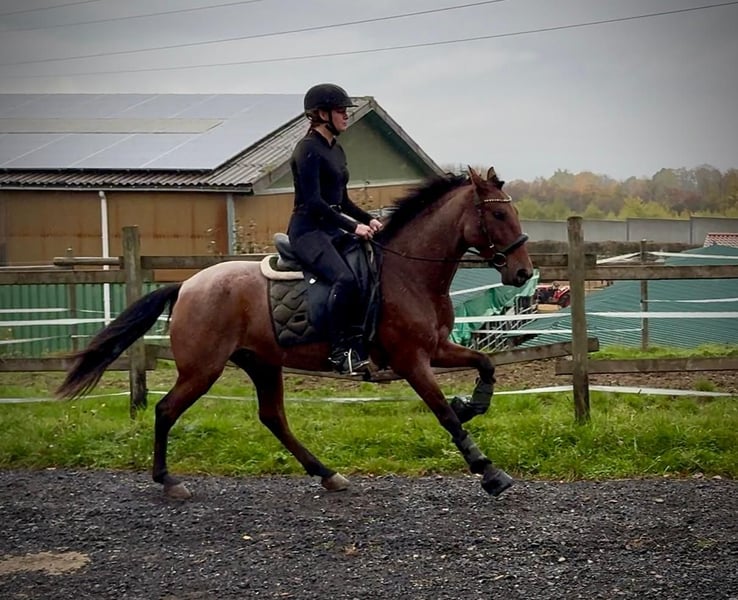 Nom : Alentejo Race : Croisé (croisement) Sexe : Hongre Date de naissance : 10/09/2020 Âge : 5 ans Taille au garrot : 1,50 m Couleur : Rouan rouge Origine : inconnue Caractère : fiable, curieux, intelligent Éducation / Aptitudes : monté, loisir, dressage, saut d'obstacles, Working Equitation Expérience en terrain : fiable, seul ou en groupe Santé : vermifugé, vacciné, pied nu, contrôle dentaire effectué, traités ostéopathiquement Hébergement : box, paddock Caractéristiques particulières : très confortable à la selle, forge et transport sans problème, compatible avec le troupeau Les propriétés mentionnées reposent sur notre appréciation personnelle et ne constituent en aucun cas une garantie. Prix : 7 500 € (prix TTC) Vous avez suscité notre intérêt ? Pour vous donner une meilleure impression d’Alentejo, nous serions heureux de vous envoyer sa vidéo de monte. Nous restons à votre disposition pour une description détaillée du cheval, un conseil personnalisé, ou pour répondre à toutes vos questions, également par téléphone. N’hésitez pas à nous contacter à tout moment par WhatsApp ou par téléphone au : +49 151 19487595 Nos horaires téléphoniques sont quotidiens de 7h00 à 13h30 et à partir de 20h00. Nous attendons votre contact avec impatience ! Une visite vétérinaire ou une radiographie préalable à l’achat peut être effectuée par le vétérinaire de votre choix. Alentejo peut être livré en toute sécurité et confortablement dans sa nouvelle maison. Nous nous occupons de toutes les préparations nécessaires et du transport, afin que votre nouveau compagnon arrive sans stress, bien soigné, assuré et en bonne santé. Actuellement, nous proposons une sélection soigneusement choisie de chevaux à vendre. Avec nous, vous trouverez sûrement le cheval de vos rêves. N’hésitez pas à visiter notre site internet : www.marvinsroyalhorses.de. Chers clients, nous serions heureux de vous présenter nos chevaux. Vous pouvez également faire des visites, brosser, seller, longes, faire du travail à pied ou des essais en carrière, en manège ou en terrain, pour mieux connaître votre futur compagnon. Cela coûte 40 € par cheval, et 30 € pour chaque cheval supplémentaire, montant remboursé lors de l’achat. Notre adresse : Ferdinand Grube 50 53577 Neustadt Wied Google Maps : marvinsroyalhorses