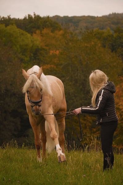 Bandolero is a 5.5-year-old gelding, approximately 1.67 cm in the dream color Palomino. *Bandolero* is a well-trained and rideable gelding. He is stunningly beautiful and has a very cool and honest character. He is also suitable for nervous riders and young people. He performs lateral movements, is easy to ride through the neck, and is very pleasant to sit on. He has three beautiful, elegant gaits. He is also well-trained on the ground, can sit down, kneel, lie down, and perform the Spanish walk. In the field, he goes great alone and in a group, is familiar with traffic, and is not bothered by unfamiliar environments. Bandolero enjoys going into the water, and even deer passing by do not faze him. He always shows himself to be fearless and curious. He is very people-oriented and loves to cuddle. A dream horse without a doubt. You can't overlook this eye-catcher. He brings joy in everything. Pferdehandlung Dederichs – Your partner for buying horses. Contact & Availability: Please make inquiries exclusively by phone at 0173/9792139. Monday – Friday: 09:00 – 18:00 Saturday: 09:00 – 15:00 Sunday: Closed Follow us on Social Media! Experience our daily life with the sale horses on Instagram, TikTok & Facebook under Pferdehandlung Dederichs. Discount: Receive a discount of 5%–10% when you take your new dream horse home immediately. Trial Riding & Presentation: • Trial Riding: €30 per horse (max. 2 riders), amount will be credited upon purchase. • Holidays: Trial ride €50. • Presentation by our riders: €25 per horse (warm-up, ground work, etc.). Purchase Examination & Transport: • Many of our horses already have a purchase examination (AKU). • You are welcome to bring your own veterinarian. • We are happy to organize an examination. • We also gladly assist you with transport to the new home. More sale horses: We have additional sale horses in our stable that are not yet online. If your dream horse is not listed, please do not hesitate to contact us. Important Notes: • Height measurements are estimated and not precisely measured. • All descriptions are subjective assessments by the seller and do not constitute guaranteed characteristics. For more information, visit: www.Pferdehandlung-Dederichs.de