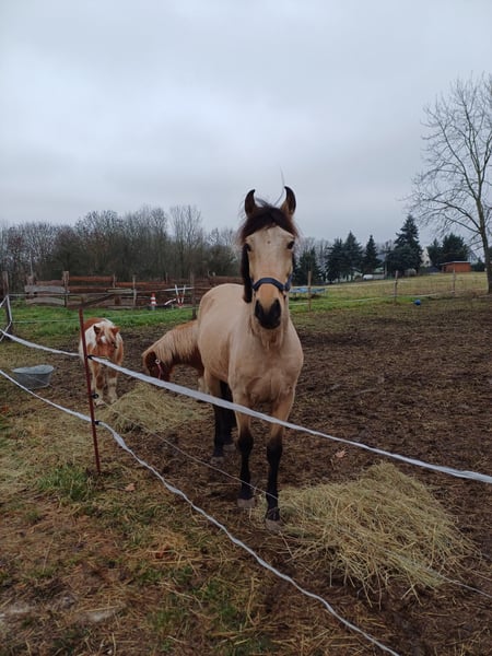 Ich gebe meinen Wallach Relampago(Rufname Mucki) ab. Er braucht einen Besitzer mit Erfahrung u Durchsetzungsvermögen. Er ist lieb im Umgang braucht aber jemanden der ihm Sicherheit gibt. Er sollte mit Wallachen zusammenstehen, mit Stuten funktioniert es nicht. Er wurde bereits geritten stand aber jetzt witterungsbedingt einige Wochen. Bei Interesse melden Sie sich gerne telefonisch bei mir. 01774676527