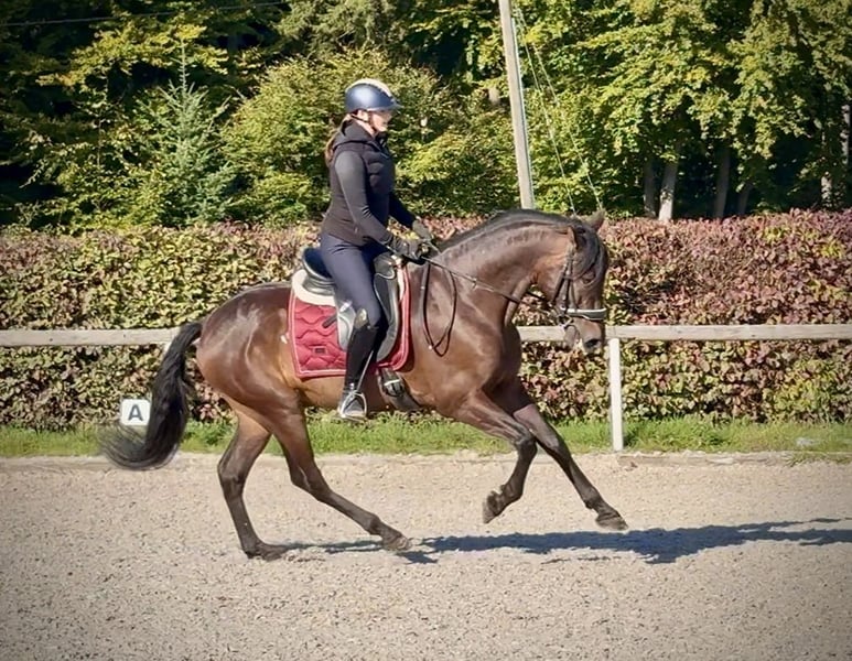 Name: Atrevido Breed: Crossbred Gender: Gelding Date of Birth: February 2, 2018 Age: 7 years Height: 16.1 hh Color: Dark Brown Pedigree: Unknown Temperament: People-oriented, curious, intelligent, attentive, sensitive Training/Suitability: ridden, dressage, leisure riding, jumping Trail Experience: reliable, fearless, comfortable alone and in a group Health: dewormed, vaccinated, barefoot, eczema-free, teeth checked, osteopathically treated Stabling: box stall, open stable Special Features: excellent basic gaits, comfortable seat, farrier and loading-friendly, herd-compatible The properties listed are based on our personal assessment and do not constitute guaranteed characteristics. Price: €8,900 (gross price) Have we piqued your interest? To give you a better impression of Atrevido, we are happy to send you his riding video. Of course, we are available for a detailed description of the horse, personal consultation, and to answer all your questions by phone. Please feel free to send us a WhatsApp message at any time or call us at: +49 151 19487595 Our phone hours are daily from 7:00 am to 1:30 pm and again from 8:00 pm. We look forward to hearing from you! A clinical or radiological purchase examination can be carried out by your veterinarian of choice. Naturally, Atrevido can be safely and comfortably delivered to his new home. We take care of all necessary preparations and transportation so your new horse arrives stress-free, well cared for, insured, and in good health. Currently, we offer a carefully selected range of horses for sale. With us, you are guaranteed to find your dream horse. Feel free to visit our website at: www.marvinsroyalhorses.de. Dear customers, we are happy to introduce you to our horses and offer grooming, tacking, lunging, ground work, and trial riding in the riding hall, on the arena, or in the field to get to know your new family member better. This service costs €40 per horse, with each additional horse €30, and will be refunded upon purchase. Our address: Ferdinandstraße 50 53577 Neustadt-Wied Google Maps: marvinsroyalhorses