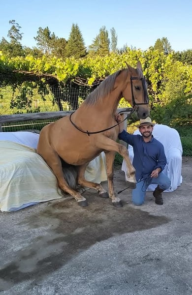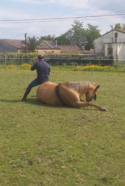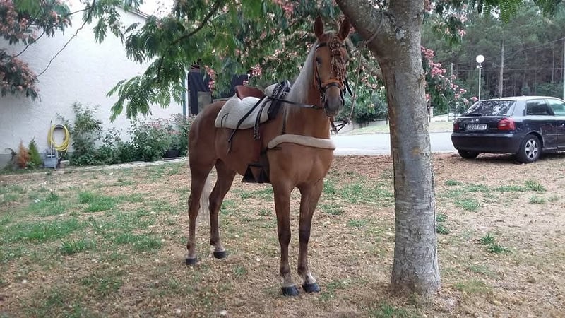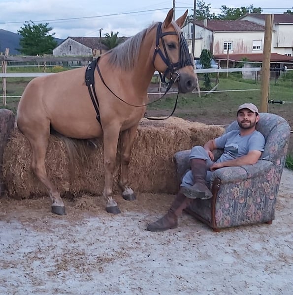 Verkauft wird eine Stute mit fabulösem Temperament, ausgebildet in der klassischen Dressur mit hochschulähnlichen Übungen. Sie ist tragend von einem kürzlich geborenen Fohlen. Das Pferd besitzt eine besondere Fellfarbe. Im Bild ist der Vater zu sehen, ein reinrassiger spanischer Pferdehengst mit schwarzem Fell.