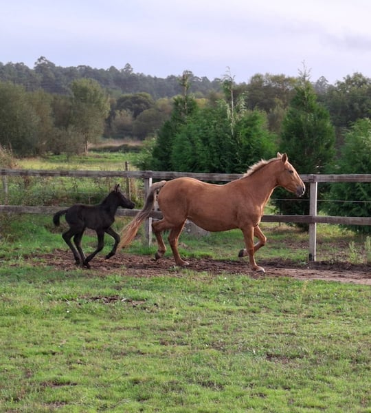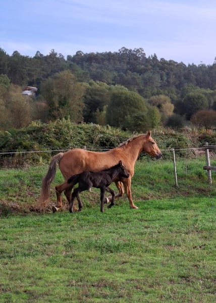 Sprzedam klacz o wspaniałym temperamencie, jeżdżoną z wysokiej klasy ćwiczeniami szkoły jazdy. Klacz jest w ciąży z młodym źrebięciem, które niedawno się urodziło. Rasy wyjątkowe, na zdjęciu ojciec – konik czarnej maści, czystej rasy hiszpańskiej.