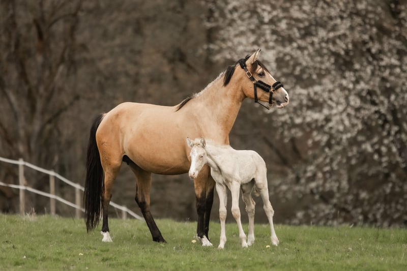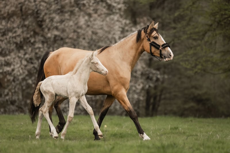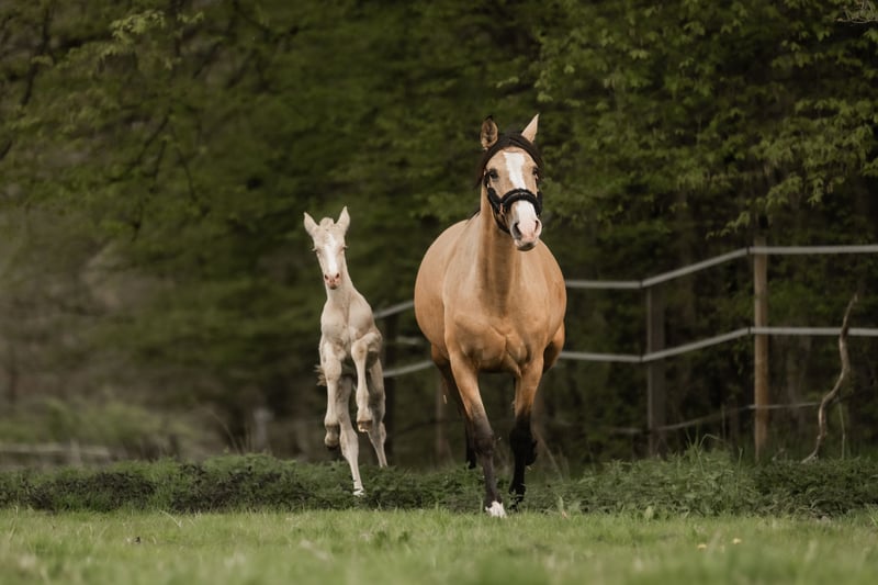 This young Cruzado mare, born in March 2021, impresses with her exceptional presence and striking appearance. Standing approximately 1.60 meters tall, she is a true one-of-a-kind due to her color combined with a large, distinctive blaze. Together with her Cremello colt foal born on April 7th, 2026, who has excellent movement, she is seeking a new home. Gisele is still untrained and has been gently introduced to the life of a future riding horse step by step, with patience and calmness before her birth. She is very sweet, cooperative, and human-oriented. She approaches new experiences attentively and cautiously. Her eagerness to learn and her honest character show daily progress, which she has also passed on to her foal. Both are genuine unpolished gems in a special color with great potential. For daily turnout, Gisele is accustomed to going out to the paddock and relaxes peacefully within the herd there. She has been regularly presented to the farrier and is currently barefoot. They are located in 53578 Windhagen-Rederscheid. If you are interested or have any questions, we look forward to hearing from you. Additional pictures and videos can be sent via WhatsApp at +49 1590 1725817. A personal visit is almost always possible. Of course, there is also the option to arrange for her to be transported directly to her new home.