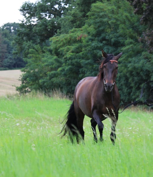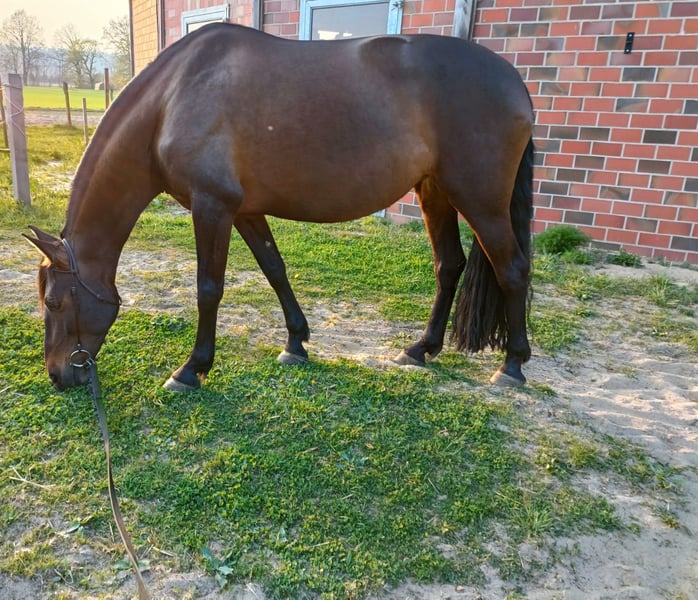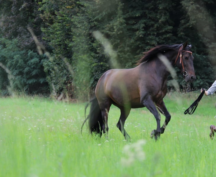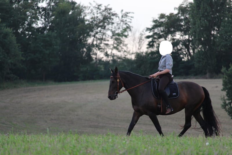 Zum Verkauf steht eine bildhübsche dunkelbraune Cruzado Stute mit einem Stockmaß von ca. 162 cm. Sie überzeugt durch ihr korrektes, kompaktes Gebäude und ihr angenehmes Wesen. Colina ist barhuf, regelmäßig entwurmt und geimpft und kennt sowohl Boxenhaltung mit Paddock als auch im Sommer 24-Stunden-Weide. Aufgrund von sehr reichhaltigem Heu ist die Stute aktuell etwas übergewichtig. Charakterlich ist sie ein echtes Herzenspferd: sehr lieb, menschenbezogen, freundlich und aufgeschlossen gegenüber Mensch und Pferd. Colina ist feinfühlig, intelligent, lernwillig und interessiert an neuen Aufgaben. Neue Inhalte nimmt sie schnell auf und arbeitet stets motiviert mit. Unter dem Sattel überzeugt sie durch sehr weiche und angenehme Grundgangarten. Die Stute wurde vielseitig gearbeitet und ist ein echtes Allroundtalent. Angeritten wurde sie im Westernstil und kennt bereits Brücke, Stangenarbeit, Sidepass und weitere Elemente. Aktuell wird sie in klassischer Reitweise weiter ausgebildet und lernt unter anderem Anlehnung, Schulterherein und Gangverstärkungen. Aufgrund ihres aktuellen Ausbildungsstandes ist sie noch nicht für Anfänger geeignet. Zwar lässt sie sich von unerfahrenen Reitern lenken, benötigt jedoch reiterliche Unterstützung bei Anlehnung und den Lektionen. Im Gelände zeigt sie sich in der Gruppe entspannt, alleine ist sie noch etwas wachsam. Sie passt ideal zu einer feinfühligen, ruhigen und reiterfahrenen Person, die Freude daran hat, sie weiter auszubilden und regelmäßig zu fördern. Mit ihrem liebevollen Wesen und ihrem großen Potenzial ist sie ein echtes Traumpferd und wartet auf ihren passenden Menschen. Leider wurde bei einer AKU ein leichter Zufallsbefund festgestellt.