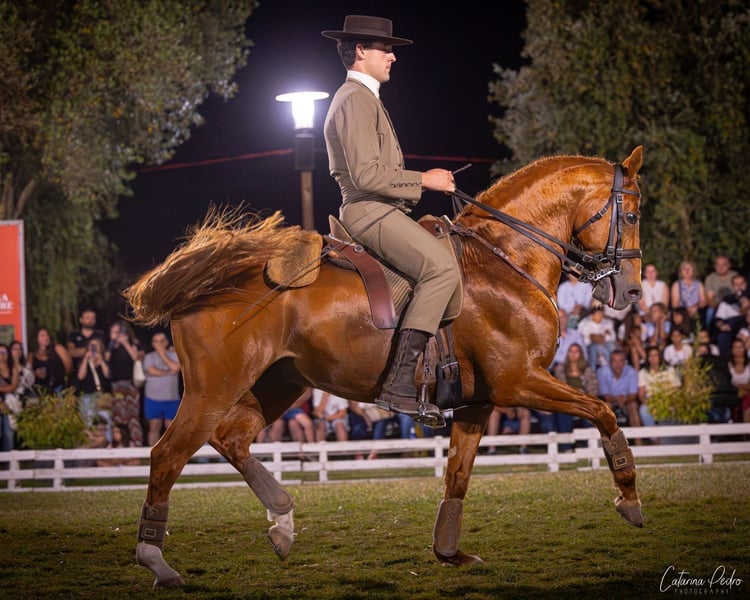 Sehr lieber und freundlicher Hengst. Ausgebildet im hohen Niveau in Working Equitation und Dressur. Einfache Fliegenschritte und Tempiwechsel 4, 3, 2 sowie Pirouetten. Hat Show-Erfahrung. Standort in Zentralportugal.