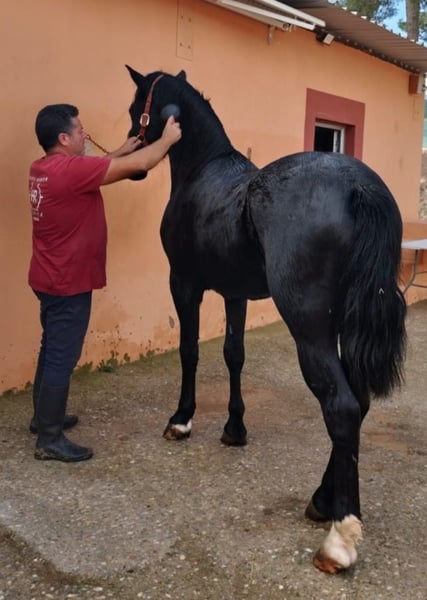 Hispano Frisón con Pasaporte. Capa Negra Edad 3 años y Medio , Entero Barroco, Talla 1,57 en Crecimiento Noble en el Manejo, Cepillar, Duchar,etc. Actualmente en Proceso de Desbrave Doma y Entrenamiento, No Montado. Revisión Veterinaria OK Vacunado y Desparasitado Se Acepta Revisión Veterinaria y Periodo de Pruebas en la Hípica. Concertar Visita con Cita Previa. Posibilidad de Organizar Transporte Nacional o Internacional. Francisco ☎️ +34630843283