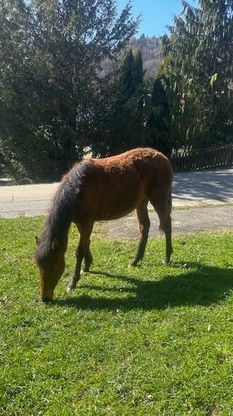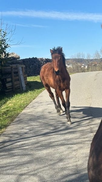 • Lebt aktuell ganzjähriger Weidehaltung mit Mama, Papa, ihrer „Tante“ und deren Fohlen.