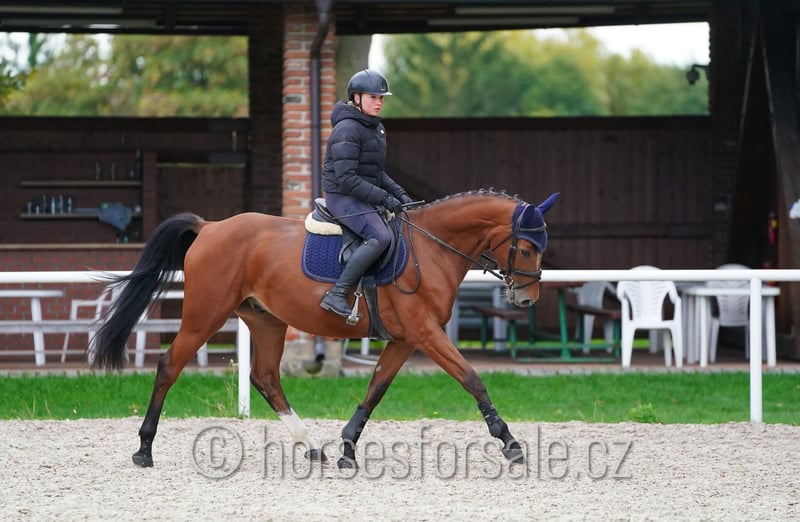HEFFRON - small allrounder for all rings, safe and easy going, hunter prospect Heffron is a lovely little allrounder with nice brain, has been ridden by an amateur lady, has been shown in show jumping ring up to MT 0.90 so far, would also suit for hunter ring, his father is a very successful in hunter classes in Canada. Heffron is safe, easy going, not looky or spooky, has easy lead changes, is safe in the trail. Price: 14.000€ Sound, x-rays available. More information or videos under +420602862723. https://youtu.be/X7vwLWWOu-k https://youtu.be/Stfl4PQAHUI https://youtu.be/mti6TjZjdOw Born: 2021, height: 162cm, pedigree: Heartvit ZH (Heartbreak ZH) x Colato R Location: 1 hour from Prague, Czech republic. Central Europe. Transport can be provided. *** more horses on my website www.horsesforsale.cz ***