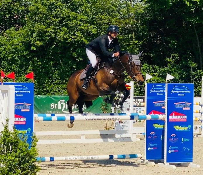 Hübsche und sehr talentierte Stute, mit viel Vermögen und einem gesunden Go. Sie ist sehr ehrgeizig und springt immer und aus allen Lagen. Ein Pferd, welches auch problemlos einmal einen reiterlichen Fehler verzeiht und seinem Reiter auch weiter hilft. Gesundheitlich in tadellosem Zustand mit AKU und Röntgen TÜV.