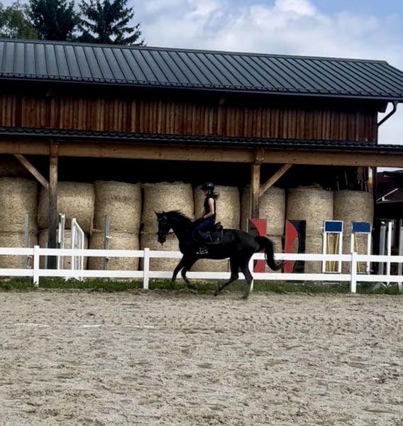 For sale is an 8-year-old Czech Warmblood mare in striking black color. Korida shows great interest in jumping and has already mastered some cross-country obstacles. In the arena, she gives the rider a secure feeling in the saddle and finds the distance on her own when in doubt. This mare is suitable for both experienced riders and ambitious riders who want to further develop their skills. In the past year, she has been actively shown at competitions by an amateur rider. Her owner is moving abroad - a good home is more important than the price due to time constraints! If you are interested or need further information, please feel free to contact me.
