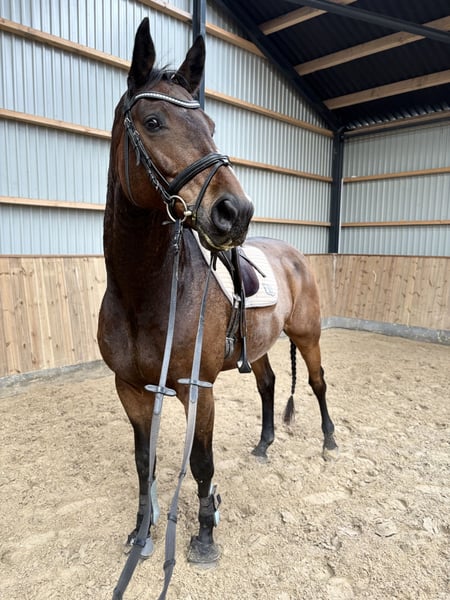 Elegant Danish Warmblood Gelding Available for Sale Discover the perfect partner for your dressage journey with this exceptional Danish Warmblood gelding. Born in 2015, this striking horse boasts a beautiful light brown coat and an impressive height of 180 cm, combining stature with grace. With a proven talent for dressage, he exhibits excellent movement, suppleness, and a willing attitude that makes him suitable for riders aiming to progress through the levels. His calm demeanor and reliable temperament make him an ideal choice for both competitive riders and dedicated amateurs. Well-trained and easy to handle, this talented gelding is ready to take his next rider to new heights. For more information and to arrange a viewing, please contact us.