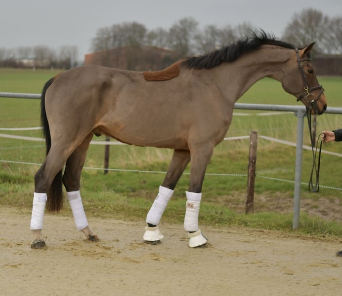 **Vic, notre magnifique cheval de dressage** Découvrez notre exceptionnel cheval de dressage — un véritable trésor doté de trois allures de base extrêmement elastiques ! Avec un pas excellent et un trot fluide, ce cheval offre un potentiel de mouvement impressionnant, qui constitue l’un de ses plus grands atouts. Nous prenons soin de ce gentil compagnon chaque jour avec passion et enthousiasme. Il possède beaucoup de qualité et a le cœur sur la main. Malheureusement, il n’a pas été suffisamment soutenu récemment et a besoin de la méthode d’équitation adaptée pour exploiter pleinement ses capacités. Pendant son temps avec nous, nous travaillons intensément à développer ses compétences. En tant que jeune cheval, il a déjà participé à plusieurs concours et montre un grand talent. Si vous recherchez un partenaire fiable, que ce soit pour débuter en compétition ou pour un cavalier de loisir ambitieux, vous êtes au bon endroit ! **Offre spéciale :** Si vous le récupérez immédiatement, bénéficiez d’une remise de 5 % sur le prix de vente ! **Possibilité d’essai :** Profitez de l’opportunité de tester ce cheval pendant une semaine chez nous. Cette semaine d’essai peut être accompagnée par des entraîneurs qualifiés, et vous avez la possibilité de combiner cela avec des cours. Veuillez noter qu’une participation aux frais d’essai sera demandée, qui ne sera pas déduite du prix d’achat. **Essai en selle :** Vous pouvez également venir voir notre trésor en personne. Les frais pour une présentation ou un essai sont de 30 € par personne. Ne manquez pas cette chance ! Notre magnifique cheval de dressage cherche des mains bienveillantes pour continuer à progresser et se réjouit de relever de nouveaux défis. Venez le voir et faites votre propre expérience !