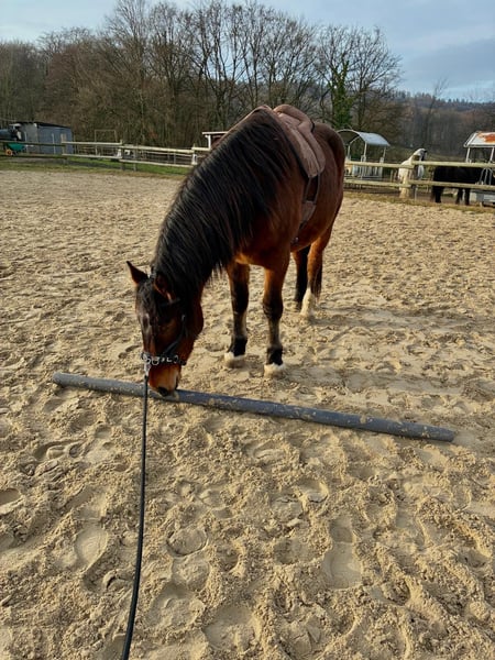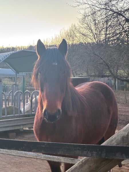 Zum Verkauf steht unser 4-jähriger Wallach Titus, ein schweres Warmblut mit einer aktuellen Größe von ca. 1,60 m. Titus wurde bei uns pferdegerecht im Natural Horsemanship gearbeitet und durfte in Ruhe lernen. Er kennt bereits Trense, Reitpad sowie Reitergewicht. In Begleitung eines anderen Pferdes geht er an der Hand mit ins Gelände. Hier zeigt er sich unerschrocken. Er ist geimpft, regelmäßig entwurmt und dem Schmied vorgestellt. Titus steht aktuell im Offenstall, ist sehr sozial und unkompliziert im Umgang mit anderen Pferden. Wir wünschen uns für ihn ein Zuhause mit ähnlicher Haltungsform. Ein freundlicher, neugieriger junger Wallach, der gefordert und weiter ausgebildet werden möchte. Leider werden wir ihm hier zeitlich nicht gerecht. Bei ernsthaftem Interesse freuen wir uns über eine Nachricht.