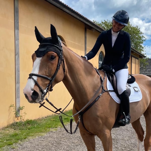 Niezwykły ogier od Complete (Coupe de Coeur) - Lexicon (Voltaire). Dużo potencjału na przyszłość w większych klasach. Startował do 120 cm. Duży koń, ale bardzo ujeżdżony, z lekkim i unoszącym się w górę chodem. Łatwy w obsłudze: można go trzymać w stajni samodzielnie, bez innych koni, przyzwyczajony do jazdy rekreacyjnej w lesie, łatwo podkuwać, załadować itp. Dobre wyniki RTG.