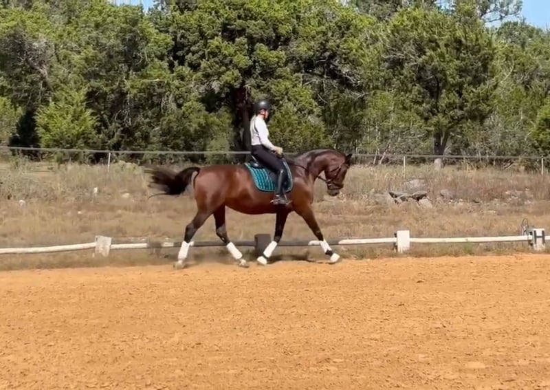 Anastasia "Anna" ist eine braune 12-jährige dänische Warmblutstute, die 15,3 Hände groß ist. Anna ist eine solide Schulpferde der Klasse L und ein vertrauensbildendes Pferd. Sehr lieb und super sicher... nicht schreckhaft. Perfekt für einen älteren Erwachsenen, der sicher reiten möchte, oder für einen jungen Reiter, der sein erstes schönes Warmblut sucht, um die Bewegungen zu lernen. Sie ist eine ehrliche Seele, die nie das Bedürfnis hatte, zu buckeln, zu steigen, durchzugehen oder etwas Unartiges zu tun. Sie geht sowohl mit einer Doppellonge als auch mit einer Trense, mit oder ohne Sporen oder Peitsche. Eher ein Pferd, das man reiten muss, als eines, das man anschieben muss. Sie geht alleine oder in Gesellschaft ins Gelände. Sie wurde in einem Programm mit regelmäßiger Hufpflege und tierärztlicher Betreuung versorgt, sodass es keine Überraschungen in ihrer Haltung gibt, da sie nur zwei Besitzer hatte. Anna lebt derzeit in einer Gruppenhaltung und ist ein pflegeleichtes Pferd. Sie steht ruhig für den Hufschmied und den Tierarzt. Sie hat ausdrucksstarke Gänge und ist dabei ein sehr komfortables Reitpferd. Großartig für jemanden, der nach seinem ersten Aufstiegspferd sucht, um Dressur zu lernen.
