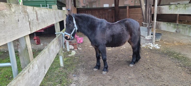 Te koop: Dartmoor-merrie – ideaal voor rijden en mennen Er wordt een mooie Dartmoor-merrie aangeboden, geboren in 2011. Ze is zwartbruin van kleur en heeft een stokmaat van ongeveer 125 cm, wat haar perfect maakt voor kleine ruiters of als koetspony. Als veulen is ze gekeurd en gekroond als hengst, maar ze heeft geen prestatieproef (HLP) voltooid. Ze is gezond, maar wordt momenteel niet voldoende gereden vanwege gebrek aan tijd. Vanwege een afstand van P9 moet ze regelmatig door een tandarts worden gecontroleerd en nagefreesd. Ik heb haar tweespannen gereden en onze dochter heeft erop gereden. Met onze zoon heeft ze longeerlijn gedaan. Over het algemeen laat ze zich goed leiden, tenzij ze honger heeft naar gras – dan moet een volwassene haar begeleiden. Ze kent grondwerk, longeerlijn, dualgassen, fladderband, en heeft respect voor grasmaairobots en grote tractoren. Bij interesse of voor meer informatie neem ik graag contact met u op. Een bezichtiging is mogelijk na afspraak. Momenteel wordt ze niet bereden, omdat mijn dochter er al geruime tijd uit is gegroeid. Locatie: Bad Sassendorf-Lohne