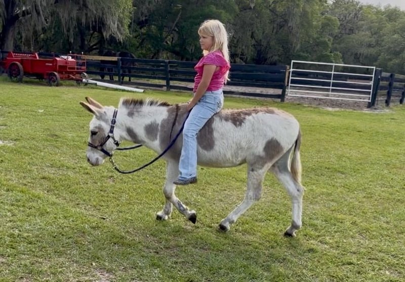 ⚜️𝐭𝐡𝐞 𝓔𝓵𝓲𝓽𝓮 𝐒𝐩𝐫𝐢𝐧𝐠 𝐂𝐥𝐚𝐬𝐬𝐢𝐜⚜️ Happening now thru MONDAY | APRIL 20th - Available EXCLUSIVELY on HorseBid's website! For more details and to register visit: www.Horsebid.com CONSIGNOR CONTACT: 3S Showing & Sales 919-810-0760 LOCATION: Ocala, FL BREED: Donkey REGISTERED: No COLOR: Paint HEIGHT: 39in AGE: 5 GENDER: Jack Pedro ✨ The most adorable little spotted donkey you’ve ever laid eyes on. Pedro is a 5 year old jack who is truly the heart of our farm. He is the kind of little guy everyone falls in love with the second they meet him. From his unique spotted coat to his kind, he’s impossible to walk past without stopping for a cuddle. He just loves people. He currently turns out peacefully with our mares and has the most gentle, easygoing demeanor. You truly wouldn’t know he’s a jack. His mind and temperament are what set him apart. Handled daily, Pedro is as broke and mannerly as they come. He ties, picks up all four feet, rides, and drives. We drive him down the rode and in heavy traffic. He will even lay down on command, making him the ultimate partner for a child or family looking for something extra special! Pedro isn’t just a donkey. He’s your best friend. We absolutely adore him. We know without a doubt he’s going to make someone very, very happy. 🤍 Shipping can easily be arranged anywhere!