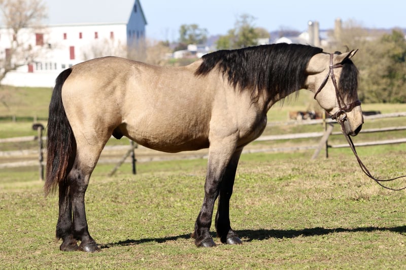 "AVAILABLE ON ONLINE HORSE AUCTION AT www DOT MagicHorseAuction DOT com BIDDING OPEN NOW thru TUESDAY | November 11TH! - BUY IT NOW AVAILABLE! *Final price will be determined on auction site* CONSIGNOR CONTACT INFO: Juli Hubik 717-875-2061 LOCATION: Gap, PA "Meet ✨Bennett✨, a 9-year-old, 15.2 1/2-hand, Perch/Brabant/QH cross gelding. This guy has the prettiest coloring and hair for days! He’s built stout and sturdy, and he’s built to last. He’d be the ideal candidate for group trail rides on an outfit or to be your trusty husband horse. He’s not in a hurry, he likes being out, and he’ll pack anyone you put on him for a trail. He has miles under his belt, a sweet personality on the ground, and good manners. Bennett rides both Western and English and has had a variety of different riders on him. He is big and sturdy enough to carry a heavier rider and is not one to get upset if someone makes a mistake. He’s been up and down the mountains, through creeks and rivers, through bridges and over logs—and has seen just about everything there is to see while out. He is used to wildlife, hikers, bikers, and dogs, and he is traffic- and equipment-safe. He’s been desensitized to the tarp, smoke, fire, flags, and ball. He is used to kids and stands to let them groom and braid his mane and luscious forelock. He has no bad stall or turnout habits and stands to be groomed, bathed, and tacked up. He has great ground manners! Bennett has also been cross-country schooling and would make a great fox hunter or one to take on paper chases! He has athletic ability and is a total natural when it comes to jumping. He has the cutest knees, he’s honest, and he genuinely seems to enjoy it! If you put him in a bad spot, he’ll cover for you, and he’s a super fun, comfortable ride. His trot is great to sit, and his canter is to die for! In the ring, Bennett doesn’t have much experience and doesn’t understand why we’re going around in circles. He’d much rather be out seeing the sights and is best suited for a trail job. He will walk, trot, and canter both ways, but has a little bit of a bored, ""do I have to?"" attitude. That being said, once you point him at some jumps or make things interesting, he’s all for it! If someone wants to continue his arena training, he has a lot of potential; however, he will be more of a project type if you're looking for a Grand Prix dressage horse. He has done lead-line rides and has all the right qualities to make a great therapy horse as well, because this boy is super safe and does love his people! He is UTD on shots, farrier, dentist, and deworming. Located in Gap, PA. Call or text 717-875-2061
