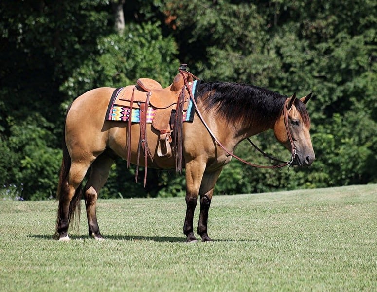 ONLINE AUCTION Place your bids at www.PlatinumEquineAuction.com Starting Bid $3500 Auction ends July 28th, 2024 Need a new saddle? Check out White Rock Saddles on our website or Facebook! Talk about a dreamhorse… Atlas is one of a kind! He checks all of the boxes, he has the color, the looks, the ride but most importantly he has the right mind! Atlas is a super stout built Golden Buckskin Gelding, standing around 15.1hh and he is 8 years old. Atlas has been used on a feedyard in Texas to around cattle, pasture roped and used to doctor as well. I have ridden down the highways, through subdivisions and he is safe around lawn mowers, all types of traffic and he is not spooky when dogs or kids come running out by the road. Atlas is great on trails and he will cross creeks, ditches, logs and navigate rough rocky areas. He is not scared of any wildlife that he meets and handles any situation that comes at him. He has a smooth jog, lopes around good and stops with ease. He is a gentle, laid back type of horse that is not in a hurry and he loves attention! Located in Level Green, KY. Feel free to call Moore Trained Horses Logan 765-265-0033 with any questions. ONLINE AUCTION Place your bids at www.PlatinumEquineAuction.com Starting Bid $3500 Auction ends July 28th, 2024 Need a new saddle? Check out White Rock Saddles on our website or Facebook!