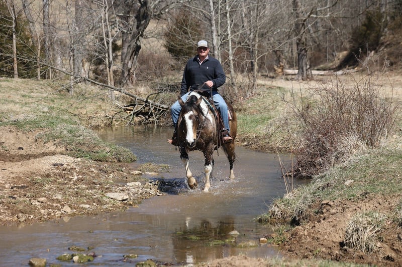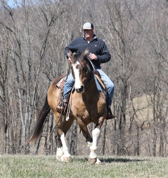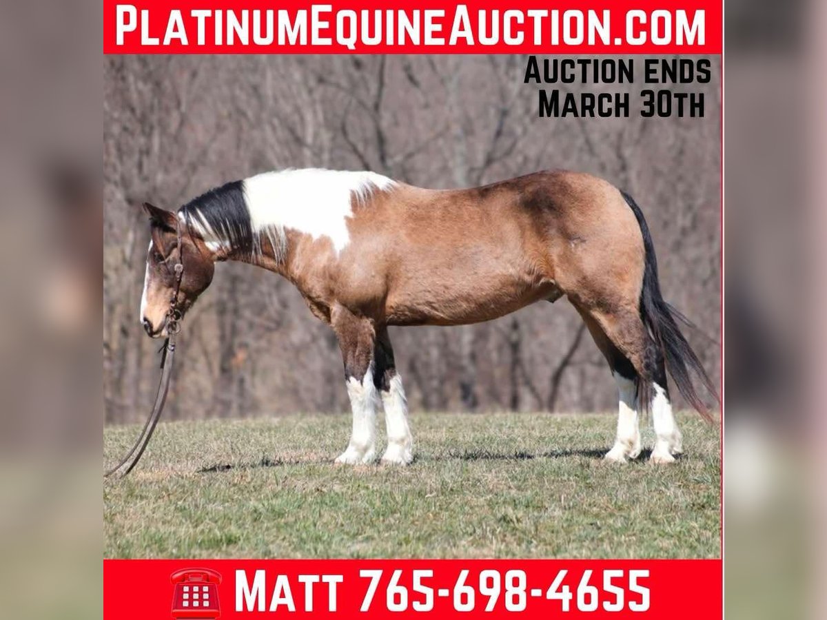 ONLINE AUCTION Place your bids at www.PlatinumEquineAuction.com Starting Bid $3500 Auction ends March 30th, 2025 Need a new saddle? Check out White Rock Saddles on our website or Facebook! Doc Holiday is a beautiful Buckskin Tobiano Paint Draftcross Gelding that is standing 15.1hh and he is a 11 years old! Doc is very stout built with a thick bone and big solid hoof, he is built for the long haul! Doc is a blue collar horse who has got up every morning and went to work making an honest living as a ranch horse. He has worked on a cow/calf operation, pasture roped/doctored/tagged. He has penned cattle at the sale barn and worked on a feedlot as well. Doc has lots of experience and is a well rounded horse that can go in any direction. He lopes nice slow circles, catches the correct leads, has a good stop and reins a circle each way. Doc is great on the trails and nothing phases him! He is content to mosey and loves going on trail rides. He will cross creeks, ditches, logs and navigate rough rocky areas. Doc has been exposed to all kinds of wildlife and will go anywhere that he is asked too. He has been rode many miles in the mountains and encountered every obstacle possible on the trail. He will go up or down even the steepest slopes, across deep creeks, over downed trees, and over all types of rough terrain while still being sure footed. Doc has been ridden down the highways and is traffic safe as well. If you want to cruise along down the trails or go out rope and tie one down Doc is a horse that will fit the bill! If you have any questions, would like to make a Buy It Now Offer or set up a Facetime Call, contact Lucky 13 Equine Matt 765-698-4655 or Lysandra 765-717-2041 Located in Brodhead, KY. ONLINE AUCTION Place your bids at www.PlatinumEquineAuction.com Starting Bid $3500 Auction ends March 30th, 2025 Need a new saddle? Check out White Rock Saddles on our website or Facebook!
