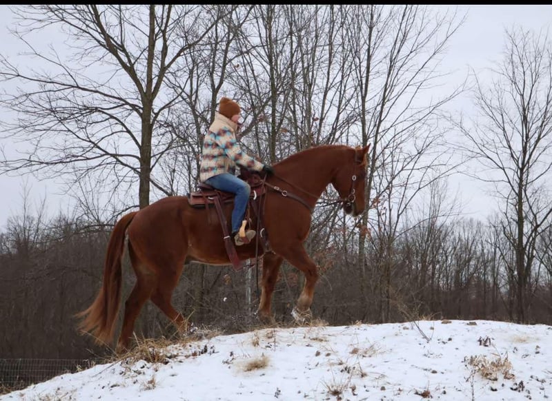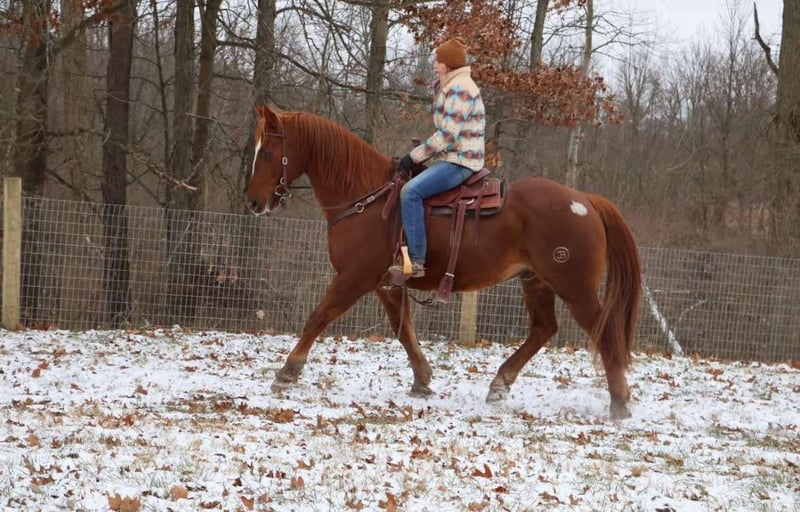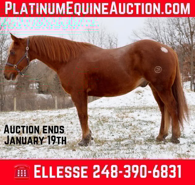 ONLINE AUCTION Place your bids at www.PlatinumEquineAuction.com Starting Bid $3500 Auction ends January 19th, 2025 Need a new saddle? Check out White Rock Saddles on our website or Facebook! Meet Patch… He is a stunning bright chestnut with a big blaze and a white patch on his hip. He stands a solid 16.2hh at 14 years young. Patch is beautifully put together and has great bone structure. He is not to big for most but big enough to take up any riders leg or carry a heavier person. Patch is slow and steady in everything he dose. He has been extensively trail ridden and is not one to shy from anything. Deep woods, water, logs, flags and tarps are not an issue for patch. He will walk trot and canter. His gaits are all very smooth and he has excellent breaks! He stands tied and has a charming demeanor. Patch is a laid back go with the flow guy who will make you want to ride! He plays well with all other horses and ponies in the pasture and stalls with no vices. Patch lives in Howell, MI 48855. Please call or text Ellesse Schwartz 248-390-6831 for more information. ONLINE AUCTION Place your bids at www.PlatinumEquineAuction.com Starting Bid $3500 Auction ends January 19th, 2025 Need a new saddle? Check out White Rock Saddles on our website or Facebook!