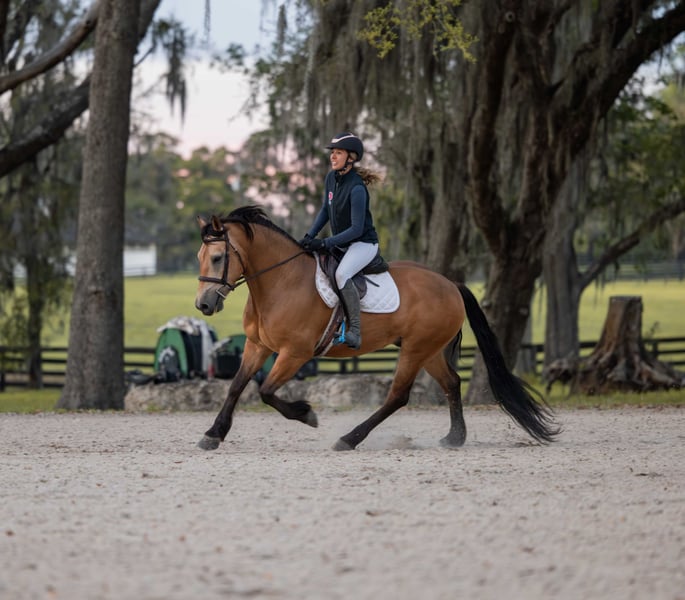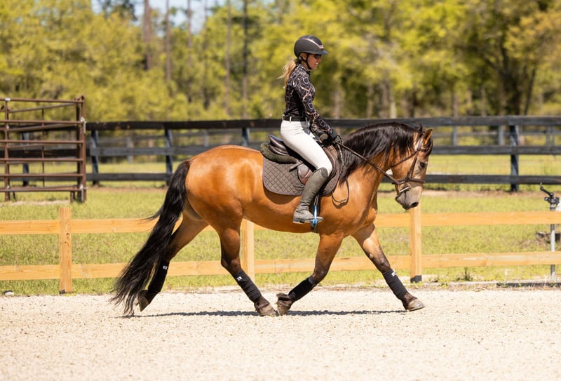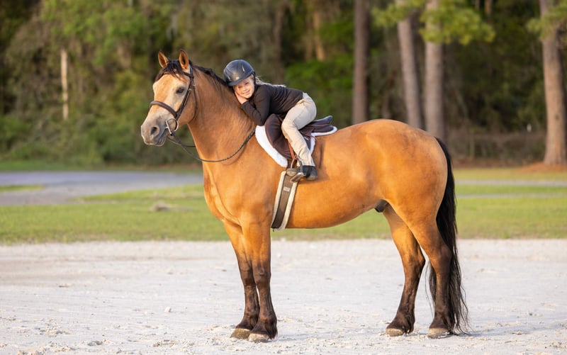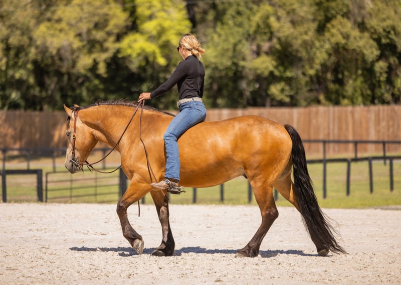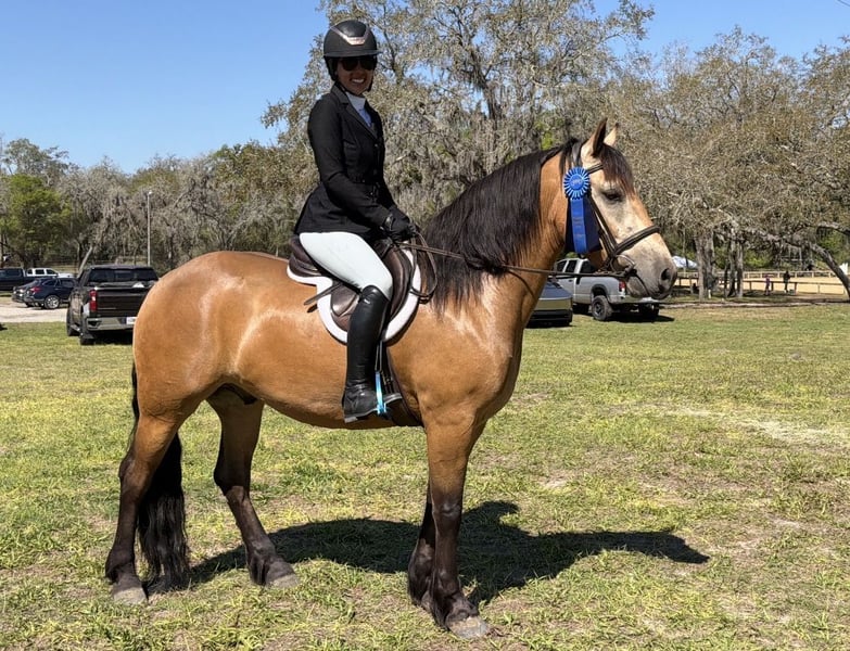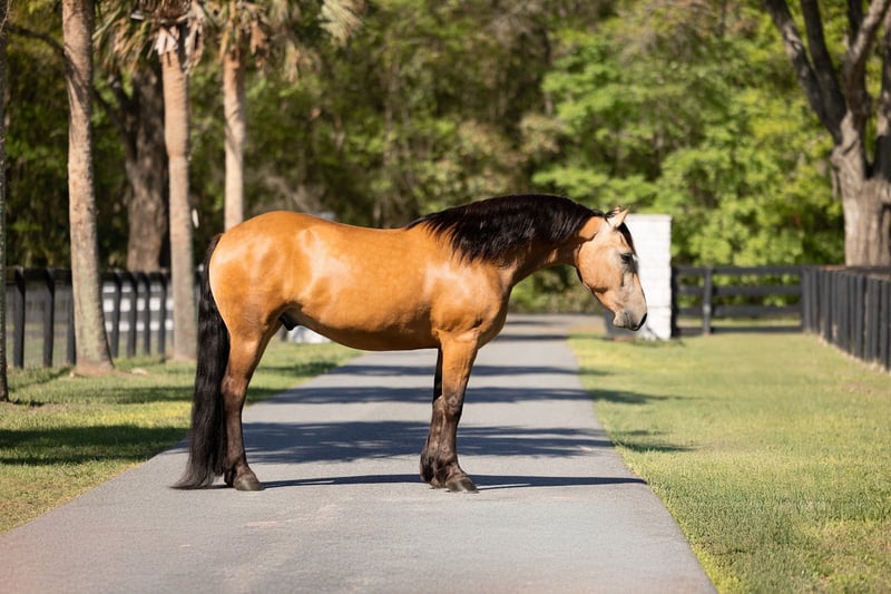 🌟𝑨𝒑𝒓𝒊𝒍 𝐀𝐋𝐋 𝐒𝐓𝐀𝐑 𝐋𝐈𝐍𝐄𝐔𝐏🌟 Happening now thru MONDAY | APRIL 6th - Available EXCLUSIVELY on HorseBid's website! For more details and to register visit: www.Horsebid.com CONSIGNOR CONTACT: 3S Showing & Sales LLC 919-810-0760 LOCATION: Ocala, FL BREED: Draft cross REGISTERED: No COLOR: Buckskin HEIGHT: 14.3 AGE: 4 GENDER: Gelding Whiskey Golden Dappled Buckskin Draft Cross Gelding with a tail that drags the ground. This 4 year old golden dappled buckskin gelding is wise far beyond his years. He stands 14.3 hands tall and has a solid, chunky build. With his long, flowing mane and tail that drag the ground, he is as striking as he is kind. Whiskey has been trail ridden from the mountain ranges of Colorado to the sandy beaches of Florida, and he takes every environment in stride with confidence and ease. Whiskey has been ridden down the road and into town. He is the type that makes every ride feel simple and enjoyable. Under saddle, Whiskey is a standout. He is a lovely mover with smooth, balanced gaits and quality flatwork. He has seamless transitions, easy leg yields, and is soft as butter in the bridle. He is ready to step right into a dressage test, yet just as happily carries a child through a weekend Pony Club outing. This past weekend, Whiskey stepped into the show ring and proved his quality—undefeated, winning the flat class out of a large group. His gaits are incredibly smooth and comfortable, making him a joy for riders of all levels. As fancy as he is, Whiskey is equally kind. He is your classic “giant teddy bear” and in your pocket. He is happy to ride bareback, quiet enough to handle a bullwhip, and willing to go gather cattle. He truly enjoys getting out on the trails and being part of whatever you ask of him. Whiskey has been cross country schooling and confidently jumps logs, gates, drop banks, and goes straight into the water. He has even completed the course with our 8 year old rider, showcasing just how forgiving and trustworthy he is. He has also successfully completed our full obstacle course with ease. In the barn, Whiskey is just as exceptional. He turns out well alone or with others, walks right up to you in the field, and genuinely loves attention. He is the type that forms a true partnership with his person. Whiskey is a true amateur dream—safe, fancy, and versatile enough to do it all.