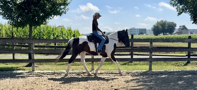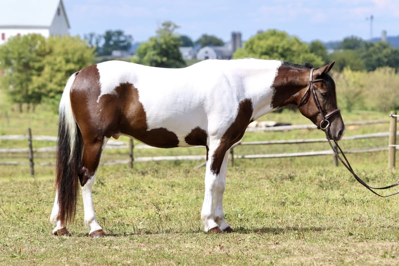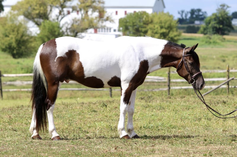 ⚜️ 𝓽𝓱𝓮 𝐇𝐨𝐫𝐬𝐞𝐦𝐚𝐧'𝐬 𝓢𝓱𝓸𝔀𝓬𝓪𝓼𝓮⚜️ Happening now thru MONDAY | DECEMBER 1st - Available EXCLUSIVELY on HorseBid's website! For more details and to register visit: www.Horsebid.com CONSIGNOR CONTACT: CM Farms 717-875-2061 LOCATION: Gap, PA BREED: Draft/Paint x REGISTERED: No COLOR: Tri Paint HEIGHT: 15.1 AGE: 4 GENDER: Gelding Meet Sánchez, a 4-year-old, 15.1–15.2hh Draft/Paint cross gelding, a.k.a. Mr. Adorable Tank on Four Legs. This compact cutie is built like a brick house and has the personality of your favorite golden retriever. He’s the kind of horse that makes you smile every time you see him — and he knows it. He’s got solid conformation, like “could survive the apocalypse” solid, but without being a skyscraper. He’s the perfect height for those of us who like our horses to be sturdy and substantial — but not so tall that you need a parachute to dismount. He takes up leg beautifully and rides both English and Western, because why limit yourself? In the arena, Sánchez is that magical combination of comfy and uncomplicated. He stands patiently to be mounted — block, ground, whatever — and once you’re on, he’s got a walk-trot-canter that feels like riding a couch made of clouds. His trot is easy to sit (yes, really), and his canter? So smooth you’ll forget about your to-do list and start planning your next trail snack. He’s got a shorter stride, which means tight circles are no problem — and you won’t feel like you’re driving a stretch limo. He’s responsive, but not reactive — just the right mix of “let’s go” and “chill out.” You don’t have to constantly nag him to move, but you can put a leg on without getting launched into space. He stops like a pro with a little seat and a “whoa,” and his brakes work better than most luxury cars. Sánchez is basically the Swiss Army knife of horses. Want to dabble in dressage? Go for it. Try some jumping? Sure. Hit a hunter pace? Absolutely. Or maybe you just want a best buddy for trail riding and barn gossip — he’s your guy. On the trail, he’s a total gem. Front, middle, back, solo — you name it. He’s been through creeks, rivers, woods, and wide-open fields like he’s auditioning for a nature documentary. He’s brave, steady, and probably more reliable than your GPS. He’s even taken beginner riders out for a spin and kept things cool, calm, and collected. He’s popped over tiny logs in the field like a saint, knees up, ears forward, and zero drama. This guy loves going new places — he’s basically the horse version of that friend who always has their bag packed for a weekend trip. Load him up, and he’s ready to go, ears perked and wondering if there will be snacks. Desensitization? Oh, he’s done it all. Fire? Check. Traffic? No problem. Tarps, balls, smoke bombs? Bring it on. While he’s not a total deadhead (he does have a brain), he’s not spooky — more curious than anything. If something startles him, he does a little blink, shrugs it off, and keeps on trucking. In the barn, Sánchez is a gentleman. He minds his manners, respects your space, and plays nicely with the other horses. He stands like a champ for grooming, tacking, and farrier visits. He picks up his feet without fuss and never turns into a pushy brat. At first, he might seem a little stoic — like a mysterious cowboy in a movie — but give him a minute, and suddenly he’s your best friend, rooting through your pockets for peppermints like a seasoned treat detective. We truly love this young guy and believe his future is super bright. That said, he is still young and learning, so he probably isn’t ideal for a complete beginner unless they’re working with a trainer who can help guide him on his path to world domination — er, success. We want a home for him where he’ll be appreciated, loved, and maybe occasionally spoiled with cookies. Because let’s be honest — this horse is kind of amazing.