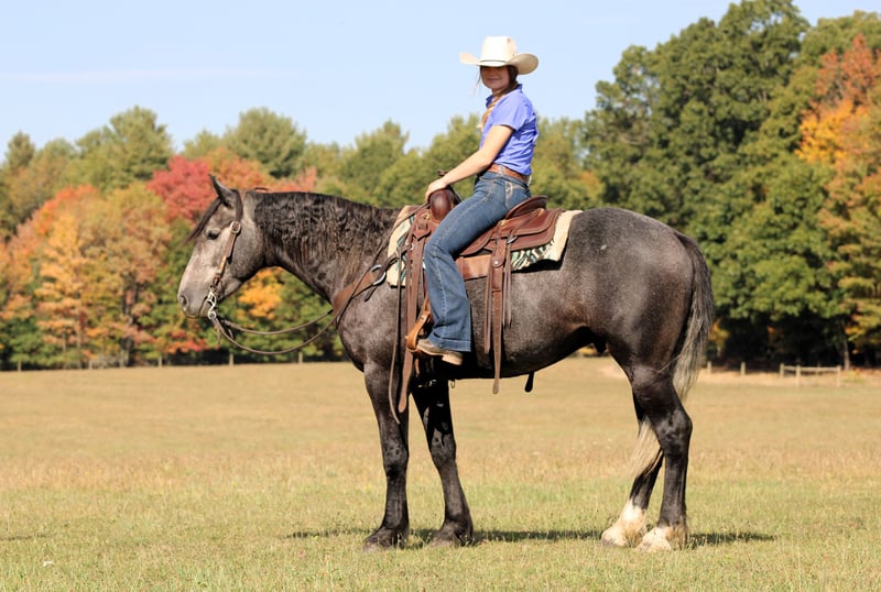 🍂 𝓐𝓾𝓽𝓾𝓶𝓷 𝑨𝑳𝑳 𝑺𝑻𝑨𝑹 𝑳𝑰𝑵𝑬𝑼𝑷 🍂 Happening now thru MONDAY | OCTOBER 6th - Available EXCLUSIVELY on HorseBid's website! For more details and to register visit: www.Horsebid.com CONSIGNOR CONTACT: Rolling Rock Farms 814-924-3828 LOCATION: Miola PA BREED: Draft cross REGISTERED: No COLOR: Grey HEIGHT: 15.3 AGE: 4 GENDER: Gelding Perry is a gorgeous 4 year old dapple grey draft cross gelding standing a solid 15.3 hands. His unique coloring and eye-catching presence turn heads everywhere he goes, and his quiet, confident demeanor makes him a joy to be around. Even though he is still young, Perry carries himself like a seasoned veteran. He rides with the kind of maturity and steadiness you normally only find in older horses. Under saddle, Perry is soft in the bridle, willing to learn, and extremely broke. He neck reins easily and stays light in the bridle, trotting around with an easy headset. His lope is smooth and balanced, and he catches both leads easily making him comfortable for long rides in the arena or out on the trail. Whether you prefer to ride in a saddle or bareback, Perry is equally steady and sure footed. This gelding has also been exposed to plenty of real world experiences that show off his versatility. He has been roped off of and will confidently drag a calf. He has carried the American flag with confidence. Out on the trail, Perry is the kind of horse you can count on. he moves through water, brush, and all kinds of rough terrain without a second thought. He is not spooky and stays level headed in new places and around new sights and sounds. Around the barn and in the pasture, Perry is easy to care for and easy to get along with. He does well whether kept in a stall or turned out in the pasture, and he is lower in the pecking order, making him a good fit in a mixed herd. He stands quietly to be saddled, brushed, and bathed, and stands good for the farrier. He currently wears four shoes and is kept up to date on his care. He sells with a current negative Coggins and a rabies vaccination, so he is ready to head straight to his new home. If you’re looking for a young horse with the mind of an experienced one, one that is handsome, broke, and already proven in and out of the arena, Perry is the complete package. For more information or to schedule a time to meet him, please contact Ethan at (814) 924-3828.
