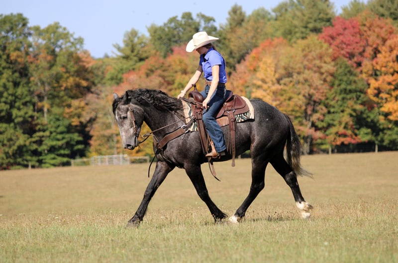 🍂 𝓐𝓾𝓽𝓾𝓶𝓷 𝑨𝑳𝑳 𝑺𝑻𝑨𝑹 𝑳𝑰𝑵𝑬𝑼𝑷 🍂 Happening now thru MONDAY | OCTOBER 6th - Available EXCLUSIVELY on HorseBid's website! For more details and to register visit: www.Horsebid.com CONSIGNOR CONTACT: Rolling Rock Farms 814-924-3828 LOCATION: Miola PA BREED: Draft cross REGISTERED: No COLOR: Grey HEIGHT: 15.3 AGE: 4 GENDER: Gelding Perry is a gorgeous 4 year old dapple grey draft cross gelding standing a solid 15.3 hands. His unique coloring and eye-catching presence turn heads everywhere he goes, and his quiet, confident demeanor makes him a joy to be around. Even though he is still young, Perry carries himself like a seasoned veteran. He rides with the kind of maturity and steadiness you normally only find in older horses. Under saddle, Perry is soft in the bridle, willing to learn, and extremely broke. He neck reins easily and stays light in the bridle, trotting around with an easy headset. His lope is smooth and balanced, and he catches both leads easily making him comfortable for long rides in the arena or out on the trail. Whether you prefer to ride in a saddle or bareback, Perry is equally steady and sure footed. This gelding has also been exposed to plenty of real world experiences that show off his versatility. He has been roped off of and will confidently drag a calf. He has carried the American flag with confidence. Out on the trail, Perry is the kind of horse you can count on. he moves through water, brush, and all kinds of rough terrain without a second thought. He is not spooky and stays level headed in new places and around new sights and sounds. Around the barn and in the pasture, Perry is easy to care for and easy to get along with. He does well whether kept in a stall or turned out in the pasture, and he is lower in the pecking order, making him a good fit in a mixed herd. He stands quietly to be saddled, brushed, and bathed, and stands good for the farrier. He currently wears four shoes and is kept up to date on his care. He sells with a current negative Coggins and a rabies vaccination, so he is ready to head straight to his new home. If you’re looking for a young horse with the mind of an experienced one, one that is handsome, broke, and already proven in and out of the arena, Perry is the complete package. For more information or to schedule a time to meet him, please contact Ethan at (814) 924-3828.