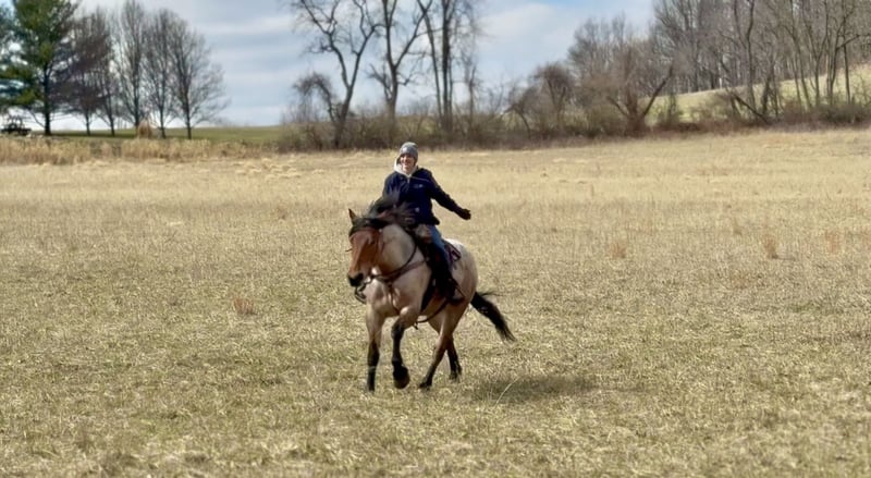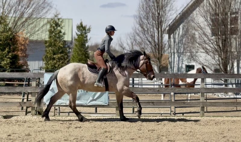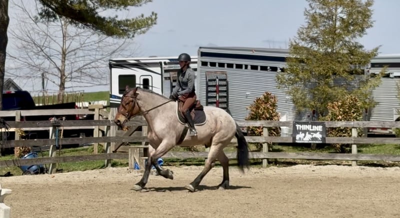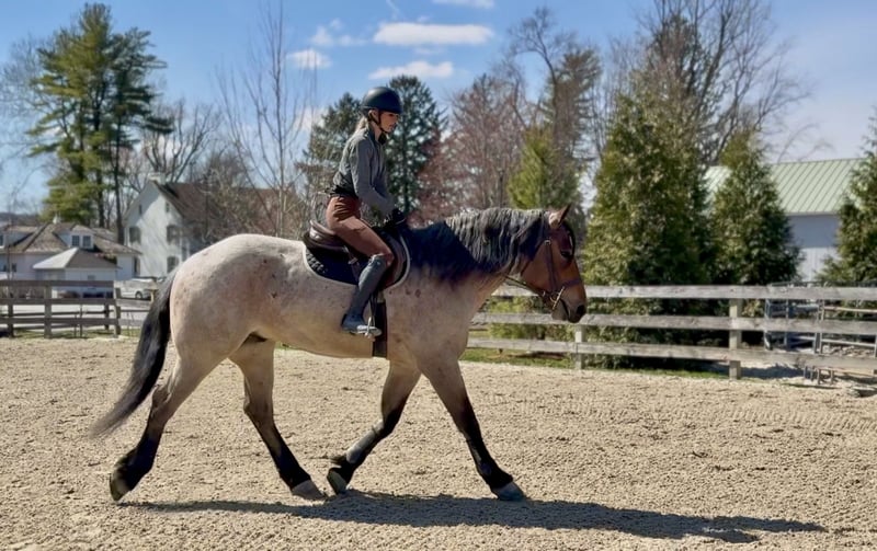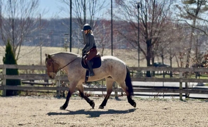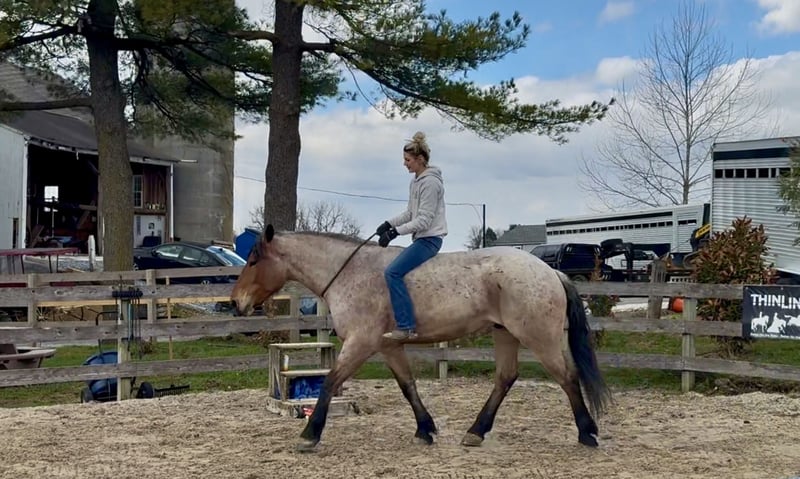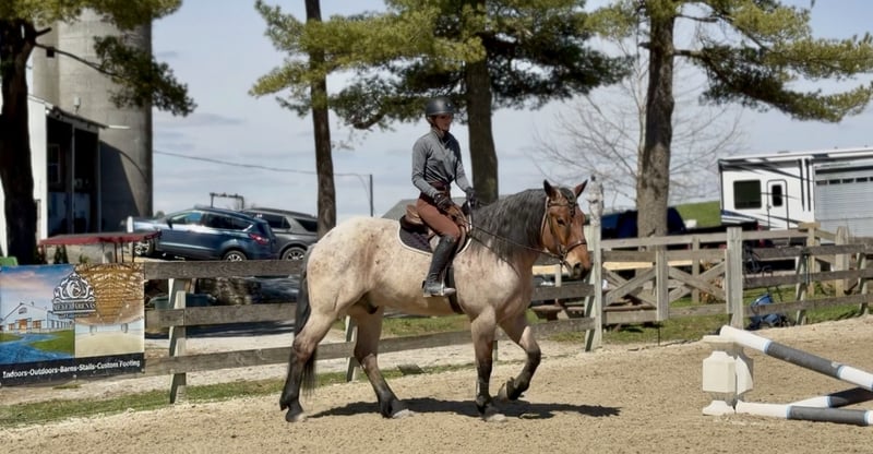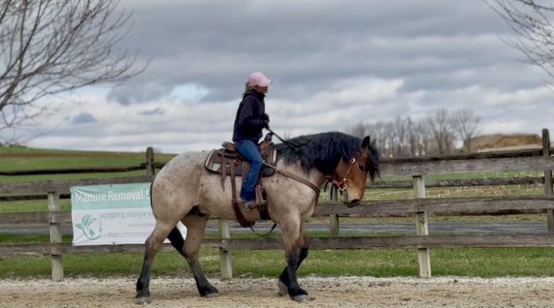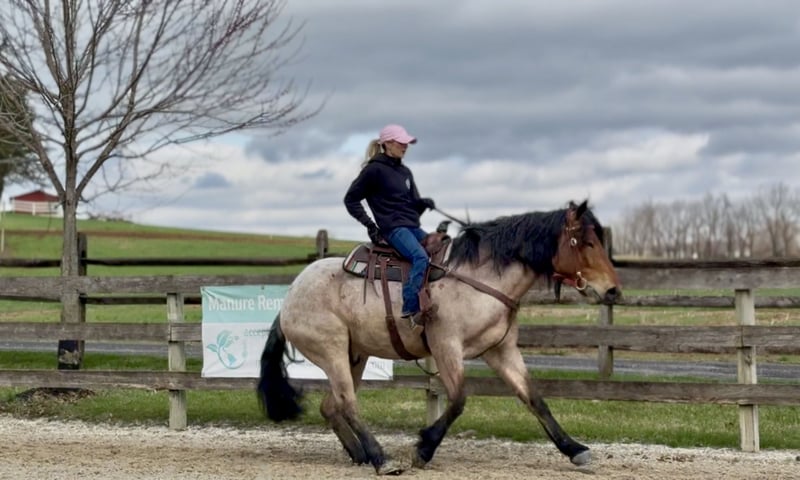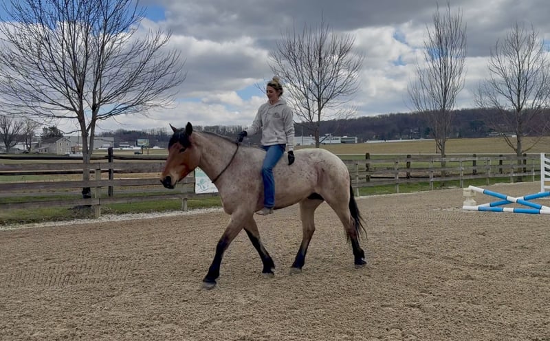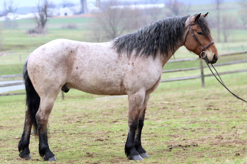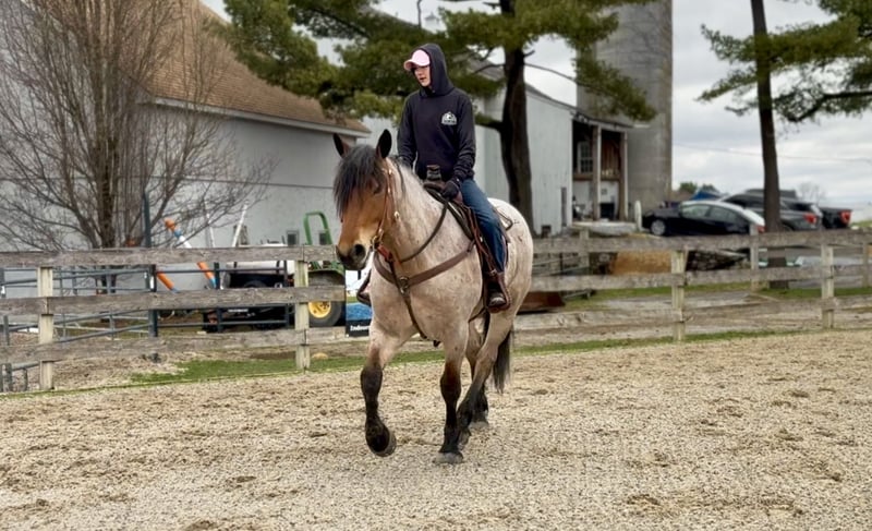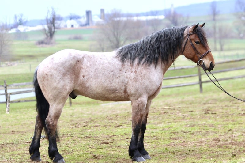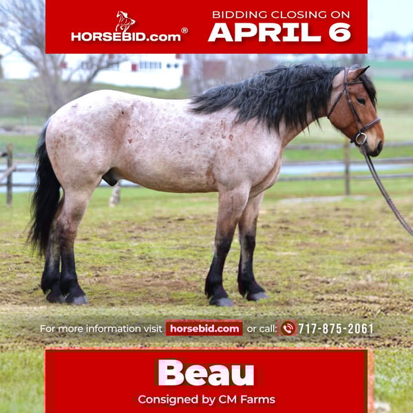 🌟𝑨𝒑𝒓𝒊𝒍 𝐀𝐋𝐋 𝐒𝐓𝐀𝐑 𝐋𝐈𝐍𝐄𝐔𝐏🌟 Happening now thru MONDAY | APRIL 6th - Available EXCLUSIVELY on HorseBid's website! For more details and to register visit: www.Horsebid.com CONSIGNOR CONTACT: CM Farms 717-875-2061 LOCATION: Gap, PA BREED: Brabant/QHx REGISTERED: No COLOR: Bay Roan HEIGHT: 16.2 AGE: 4 GENDER: Gelding Meet ✨Beau!✨ This handsome hunk of a gelding is a bay roan, four-year-old Brabant/QHx, standing right around 16.2–3 hands high. More fondly known around the barn as Beau Beau! If you’re looking for a sturdy, safe-minded guy, look no further. Beau’s got all the curves and substance without the dinner plate feet! His size and quiet demeanor make him suitable for a variety of riders. In person, this boy is truly breathtaking with his pretty roan coloring, hair for days, and lovable personality. Beau has hands-down been a favorite—he’s easy to get along with, incredibly sensible, and a serious trail master! He’s a point-and-go ride with no nonsense necessary. Despite his chunkier size, he’s even been very athletic over jumps! There’s nothing Beau can’t do. He rides Western, English, bareback, and you can even ride him bridleless! In the ring, Beau has had the best foundation put on him. Brought along with care and gentleness, his confidence shows every time you swing a leg over. It’s rare a four-year-old just “gets it,” but he truly does. He rides better than most horses twice his age! He neck reins, direct reins, and is so in tune with his rider that he’ll simply move off leg and stop off seat—no reins needed! He’s so comfortable you can easily ride all three gaits bareback and swing a tarp off him at the same time. He is not overly sensitive and adjusts to the level of his rider, making him fun for more experienced riders to play with buttons while still being safe enough to pack around a husband or amateurs. He is incredibly smart and intuitive for his age. He tends to be more of a push ride; however, he’s happy to pick up and go when asked, and he has nice self-carriage. Or, if the job is to mosey around the ring all day on a loose rein packing anyone along, he’s happy to oblige. This gelding has a great handle on him, and he is one we are proud to present. His nonchalant, unbothered personality and quiet way of going give everyone who rides him a sense of confidence and always leave a smile! On the trail, Beau is happy to pack along anyone and everyone! If you’re looking for that solid husband horse—a true trail master—here’s your guy. He is sure-footed, sturdy, and careful. You can drop the reins and he’ll do the rest. He’s a steady and brave leader when needed or just as happy to follow along. This boy is never in a hurry and never gets worked up. He’s one you can sit back and enjoy—crack a beer on, play music off him—you name it, you can do it. He’ll be the first to swim in the river, cross creeks and bridges, bushwhack through windy trails, or go for a lope in the field—he does it all. He’ll carefully step over logs or canter at them and give you a cute jump! He’d make an ideal candidate for fox hunting with how comfortable and levelheaded he is. Whatever direction Beau is taken in, we are certain he will be a star. In the barn, Beau has good manners and is respectful in every situation. He has zero vices in the stall or in turnout. He gets along with everyone and minds his business. He tends to have more of a stoic personality until he gets to know you. He’s one that will truly thrive and bond with his person—a real ride-or-die type of partner. He’s sweet, gentle, and has been an absolute champ for everything we’ve thrown at him. He is traffic-safe and sound, loads on and off the trailer with no hesitation, acts the same off-property, and is the same horse every time you pull him out. He’s an absolute pleasure to have in the barn and one you look forward to seeing every day. Whoever gets Beau will be the luckiest person in the world—we want only the best for this phenomenal boy. Beau is UTD on Shots, Coggins, Deworming, Dentist, and Farrier.