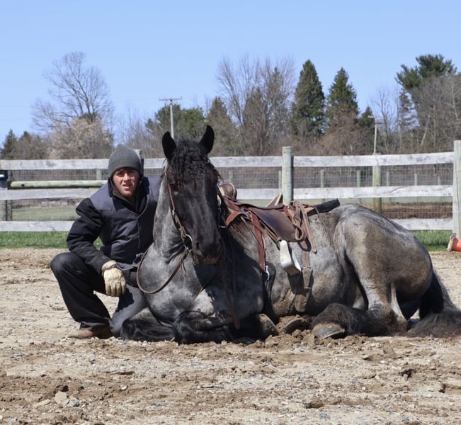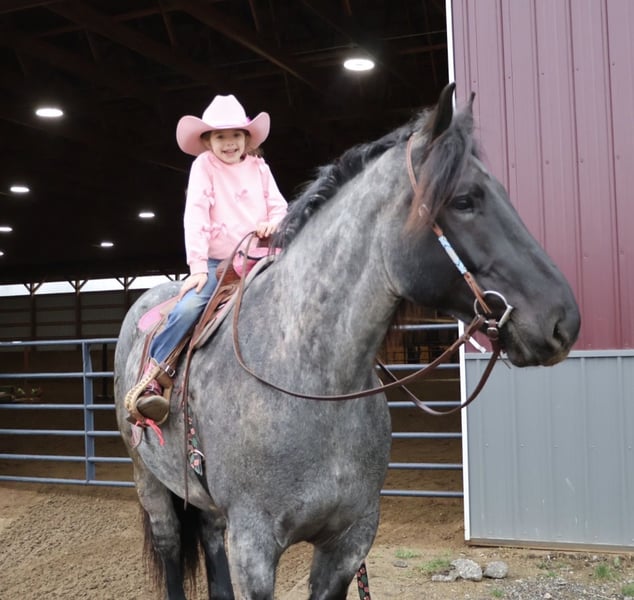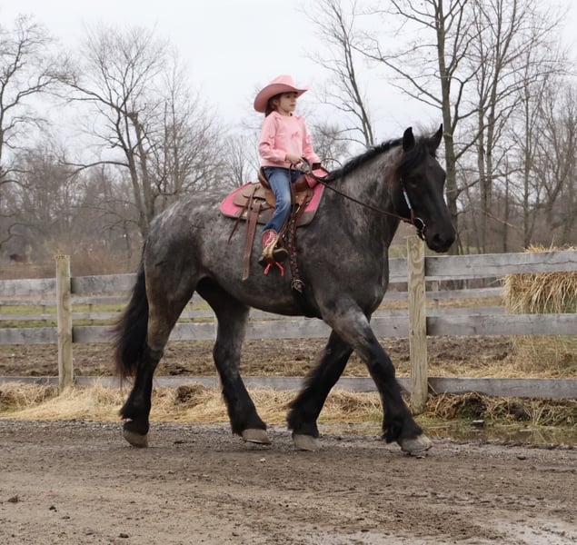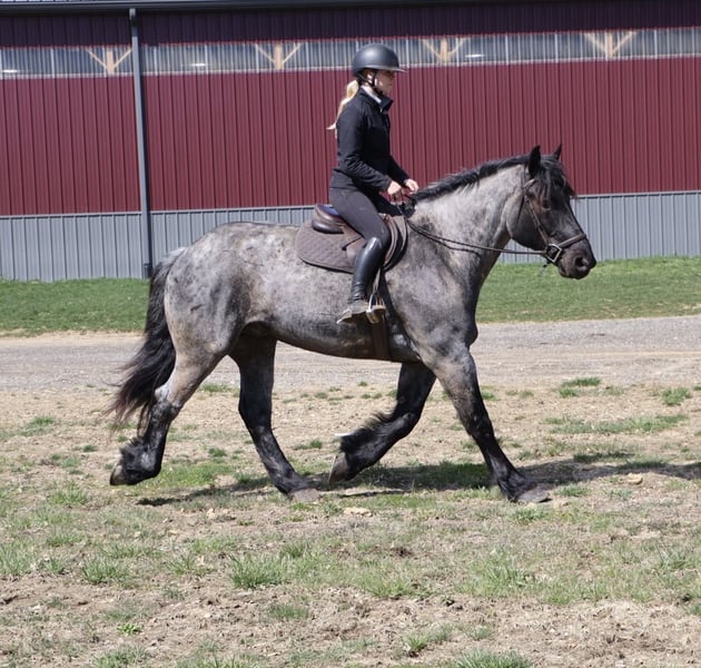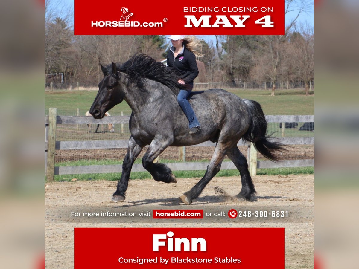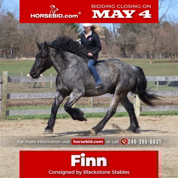 ▪️▫️◾️𝐭𝐡𝐞 𝑴𝒂𝒚 𝐒𝐞𝐥𝐞𝐜𝐭◾️▫️▪️ Happening now thru MONDAY | MAY 4th - Available EXCLUSIVELY on HorseBid's website! For more details and to register visit: www.Horsebid.com CONSIGNOR CONTACT: Blackstone Stables 248-390-6831 LOCATION: Howell, MI BREED: Brabant Quarter Horse X REGISTERED: No REGISTERED NAME: Finn COLOR: Blue Roan HEIGHT: 16.3 AGE: 4 GENDER: Gelding ** SELLING WITH A 2 week guarantee, buy with confidence, inquire for terms*** Meet Mr Dependable! His name is Finn and he is the most trustworthy, confidence boosting horse around! Not only will he turns heads wherever he goes, he has the most charming demeanor. He is a stunning true blue roan. Finn is a 4 year-old, 16.3hh Brabrant Quarter Horse cross gelding. He comes equipped with all the bells and whistles from all the fancy buttons in the arena to all of the liberty training. He will sit and lay down with the most subtle of cues, you will look like a horse whisperer working with him. He knows how to side pass, pivot back up, work on and off seat and leg pressure, pick you up at the mounting block and much more. For a horse of his size, Finn moves with incredible self carriage, grace and fluidity. He is extremely user friendly. He's so in tune with his rider you can pull all tack off and walk, trot, canter, turn and stop with your seat and leg! Finn is the horse who builds you up and makes you want to climb on his back. Whether you are riding Western, English, or bareback, or even driving him you are sure to enjoy every minute. He seamlessly transitions between disciplines with ease. You will be hard pressed to find a more bombproof horse—absolutely safe in any environment. Finn has been ridden on state roads, in the woods, open fields, and has even gone on a shopping trip to our local farm store! His beautiful roan color captures everyone’s attention! One glance into his big brown eyes will steal your heart. Out on the trails, Finn's calm, and steady nature shines. Water crossings, tarps, bridges and other common and uncommon obstacles do not phase him in the slightest. His even keel temperament makes him an ideal horse for beginners who need a forgiving partner, while his experience and smooth gaits make him just as enjoyable for advanced riders. Finn is the rare horse that adapts to his rider’s needs, making him a perfect fit for anyone from novice to seasoned equestrians. And speaking of smoothness, Finn's three gaits are simply unbeatable. His walk, trot, and canter are incredibly fluid and comfortable, making him perfect for all-day rides without leaving you sore. In short, Finn is the full package: strikingly beautiful, strong, athletic, and most importantly, safe. If you are looking for a versatile horse Finn is the perfect partner. Finn is also well broke to drive, he is traffic safe and no stranger to busy roads. Any one who can hold the lines can drive him! He is also a blast to Jump, he holds a great canter to the fences and will jump from any distance. You do not need to be accurate to navigate him around a course, in or out. He was raised on the farm and is ready to meet his forever home! Finn lives in Howell, MI 48855. Please call or text Ellesse Schwartz at 248-390-6831 (tel:248-390-6831) for more information.