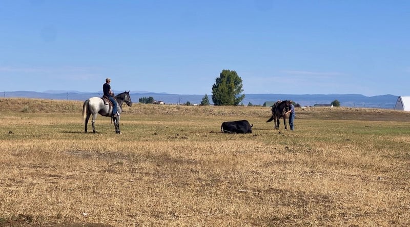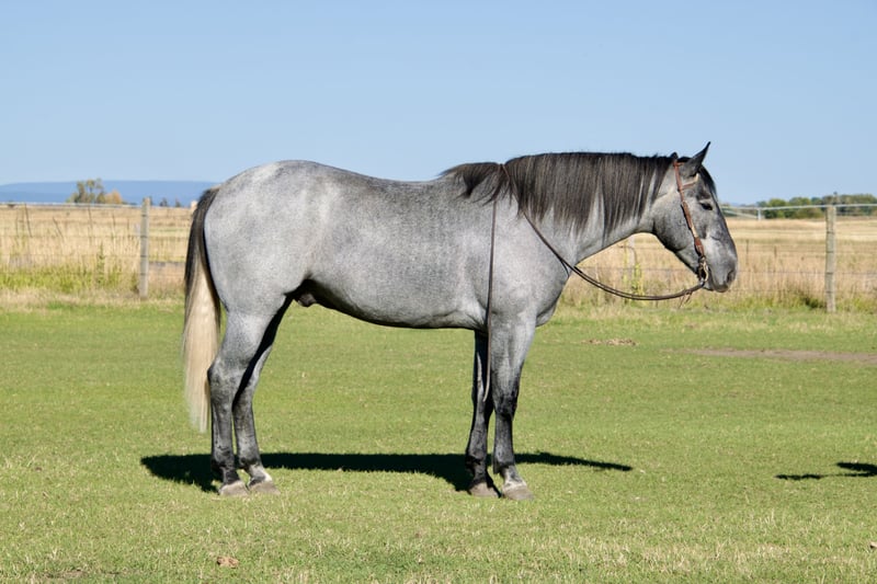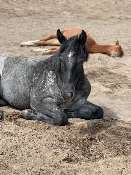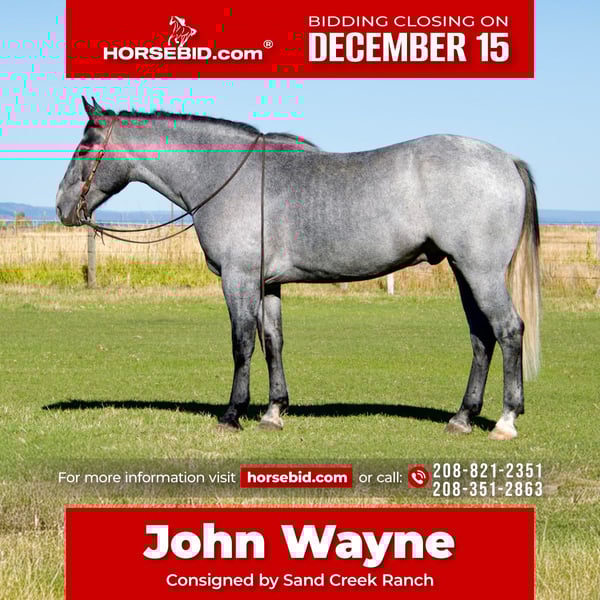 🎄𝐓𝐇𝐄 𝑯𝒐𝒍𝒊𝒅𝒂𝒚 𝐂𝐋𝐀𝐒𝐒𝐈𝐂🎄 Happening now thru MONDAY | DECEMBER 15th - Available EXCLUSIVELY on HorseBid's website! For more details and to register visit: www.Horsebid.com CONSIGNOR CONTACT: Sand Creek Ranch 208-821-2351 or 208-351-2863 LOCATION: Saint Anthony ID BREED: Draft Cross 1/2 Belgian x 1/2 Quarter Horse REGISTERED: No REGISTERED NAME: John Wayne COLOR: Blue Roan HEIGHT: 16-16.1 AGE: 4 GENDER: Gelding John Wayne or JW for short is a big beautiful coming 5 year old blue roan Belgian draft cross that we’ve raised up from a weanling. He is a very nice gelding that stands a solid 16 hh. This beautiful boy knows what a days work is all about and looks good doing any job asked of him. He’s that all around type, goes western or English. JW is soft and supple, will flex both ways, lunge on a loose line, as well as move his front and hind quarters with ease. JW lopes nice collected circles on the correct leads on a loose rein. For being a draft cross JW carries his head low and below level. He has a great stop, neck reins and is starting to spin. JW has kind eyes and wants to be your friend. He will drop is head almost on the ground to be haltered and bridled. He stands for the farrier, hauls and ties good. Not only will JW come to a mounting block for easy mounting and dis mounting but he will lay down from the ground or on top on cue. He also knows how to sit. JW has had the pack saddle on him and been on some light rides with them. He handled it great and never has skipped a beat. JW has moved cows and we have roped and snubbed up to a few on him as well. He handled it good and with more practice would make a heck of a ranch horse that could hold anything. We have also been roping and tracking the dummy on him out of the box and he is taking to it. JW will go through obstacle courses, will go over tarps, teeter todder bridge and has been around traffic. JW will cross water, side pass to open and close gates and knows where to place his feet outside. Although most of his training has been focused on ranching JW has recently started dabbling in the English world too. From fox hunting to jumping and anything in between. He would make an excellent low level eventer, hunter or equitation prospect. One that will finally give you those “relaxed” dressage scores to boast! He is athletic, very well balanced, has beautiful confirmation, and is just natural at anything you ask him to do. It doesn’t matter if you’re packing him up in the mountains, riding in the arena, or doing ranch work, JW is always getting noticed with his rich blue roan color and confirmation. We have owned and trained 4 half brothers to him and they have to have been good minded geldings and JW is no different. He loads and backs out, will load in a 2 horse trailer, good to shoe, and haul. He seeks with a current PPE taken December 4th 2025.