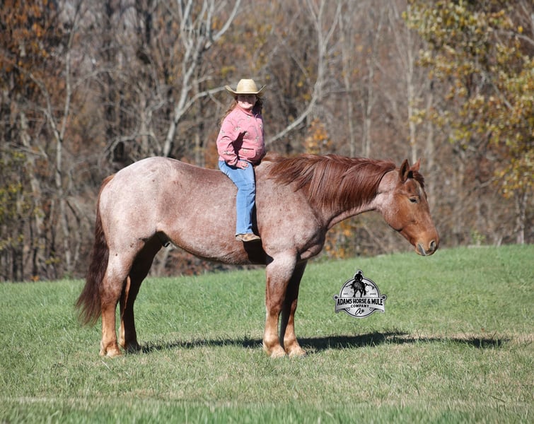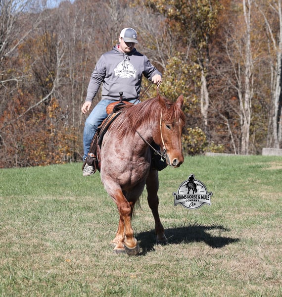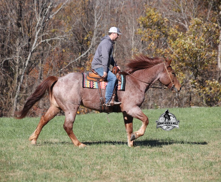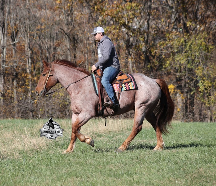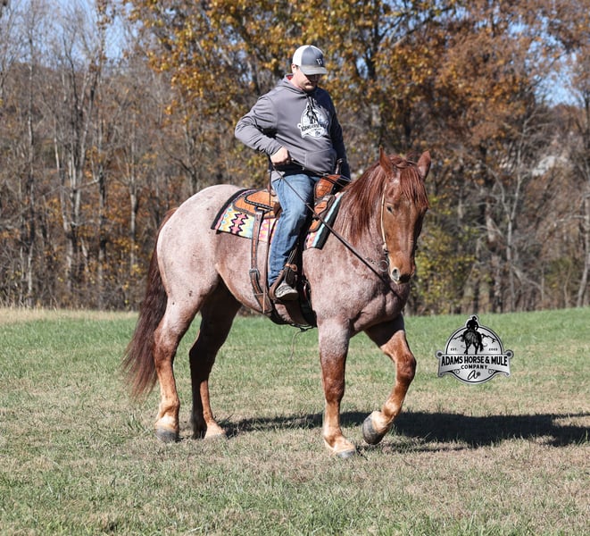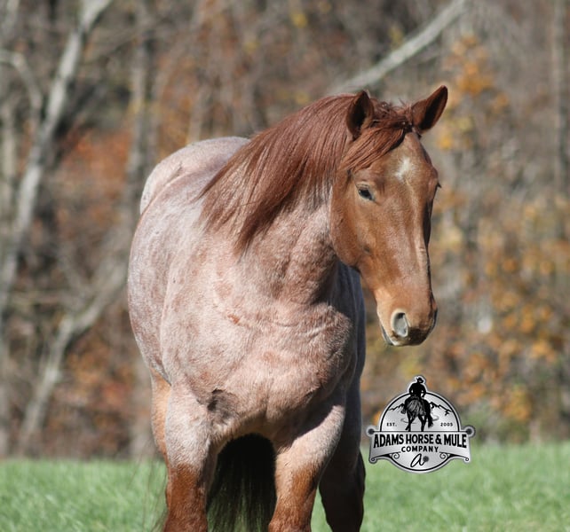 𝐀𝐝𝐚𝐦'𝐬 𝐇𝐨𝐫𝐬𝐞 & 𝐌𝐮𝐥𝐞 𝐂𝐨𝐦𝐩𝐚𝐧𝐲'𝐬 ✷𝑬𝒗𝒆𝒓𝒚 𝑴𝒊𝒍𝒆 𝑨 𝑴𝒆𝒎𝒐𝒓𝒚✷ 𝐄𝐗𝐂𝐋𝐔𝐒𝐈𝐕𝐄 𝐒𝐀𝐋𝐄 Happening now thru MONDAY | FEBRUARY 2nd - Available EXCLUSIVELY on HorseBid's website! For more details and to register visit: www.Horsebid.com CONSIGNOR CONTACT: Adams Horse and Mule Company 606-308-2461 LOCATION: Mt. Vernon, KY BREED: Draft Cross REGISTERED: No COLOR: Red Roan HEIGHT: 16.1 AGE: 5 GENDER: Gelding Grady is a beautiful true red roan and he will build your confidence levels!!! He is a 16.1h, 5 years old, draft cross Gelding! He is a big stout built guy but he is light on his feet, lopes around as soft and easy as a 14h horse, takes the correct leads, lopes nice circles, reins around and stops with ease! He is totally safe for any age and any level of rider and has been ridden by our 6 year old. He has been ridden inside and out. Grady loves attention and is as friendly as they come plus he is very calm natured! He has been ridden down the highways and he is traffic safe. He is great on trails and he will cross creeks, ditches, logs and navigate rough rocky areas. He has been exposed to all kinds of wildlife such as deer or turkey and will go anywhere that he is asked too. He has been ridden many miles in the mountains of Eastern Kentucky and encountered every obstacle possible on the trail. He has been on several week-long camping trips. He hauls well and picketline ties also. He will go up or down even the steepest slopes, across deep creeks, over downed trees, and over all types of rough terrain while still being sure footed. He has been ridden around the ranch to check cattle, ride fences and used at brandings to drag calves. Grady has been started jumping over rails and logs as well. If you want one that the whole family will love or years to come, Grady is the total package! Feel free to call Eric 606-308-2461 with any questions.